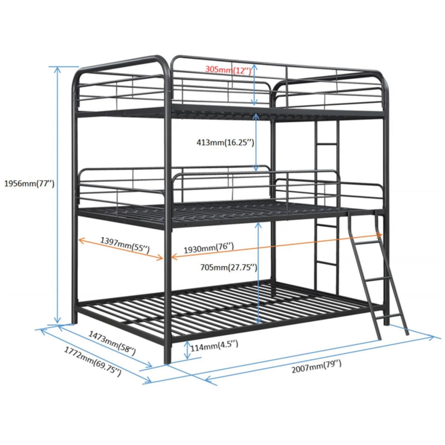 Triple Bunk Bed, Full Size With Sturdy Metal Frame And Safe Stairs - Black