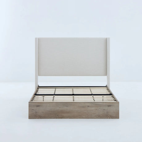 Very low stockSale price $559 Regular price $839Unit price /UnavailableShelton - Queen Upholstered Wingback Bed With 54" High Headboard - Ivory / Light Gray / Camel Oak