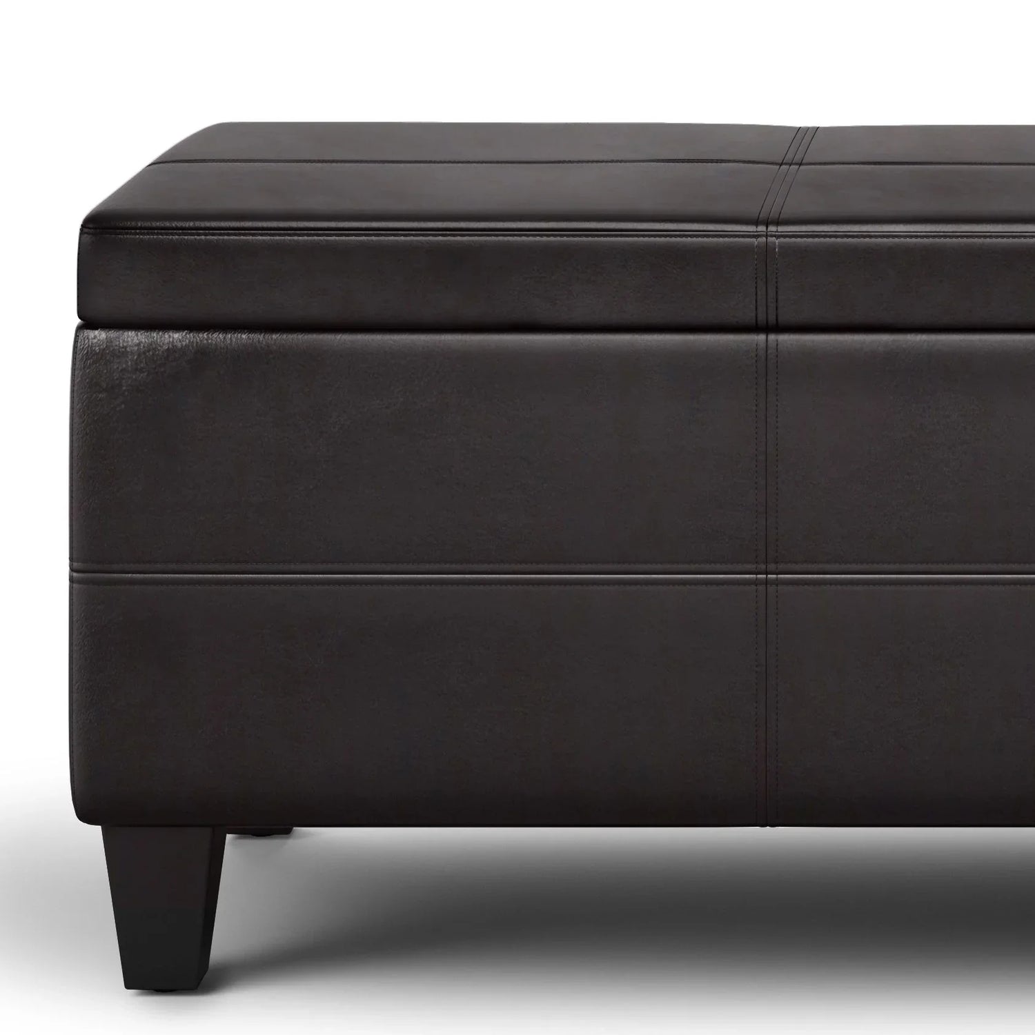 The Avalon Lift Top Rectangular Storage Ottoman in Tanners Brown is made for people who need smart, stylish storage and extra surface space in living rooms, entryways, or at the foot of a bed. Its clean, contemporary silhouette and stitched panel detailing give a modern look while the roomy lift-top makes it easy to use as a laptop surface, casual dining spot, or concealed storage bench.