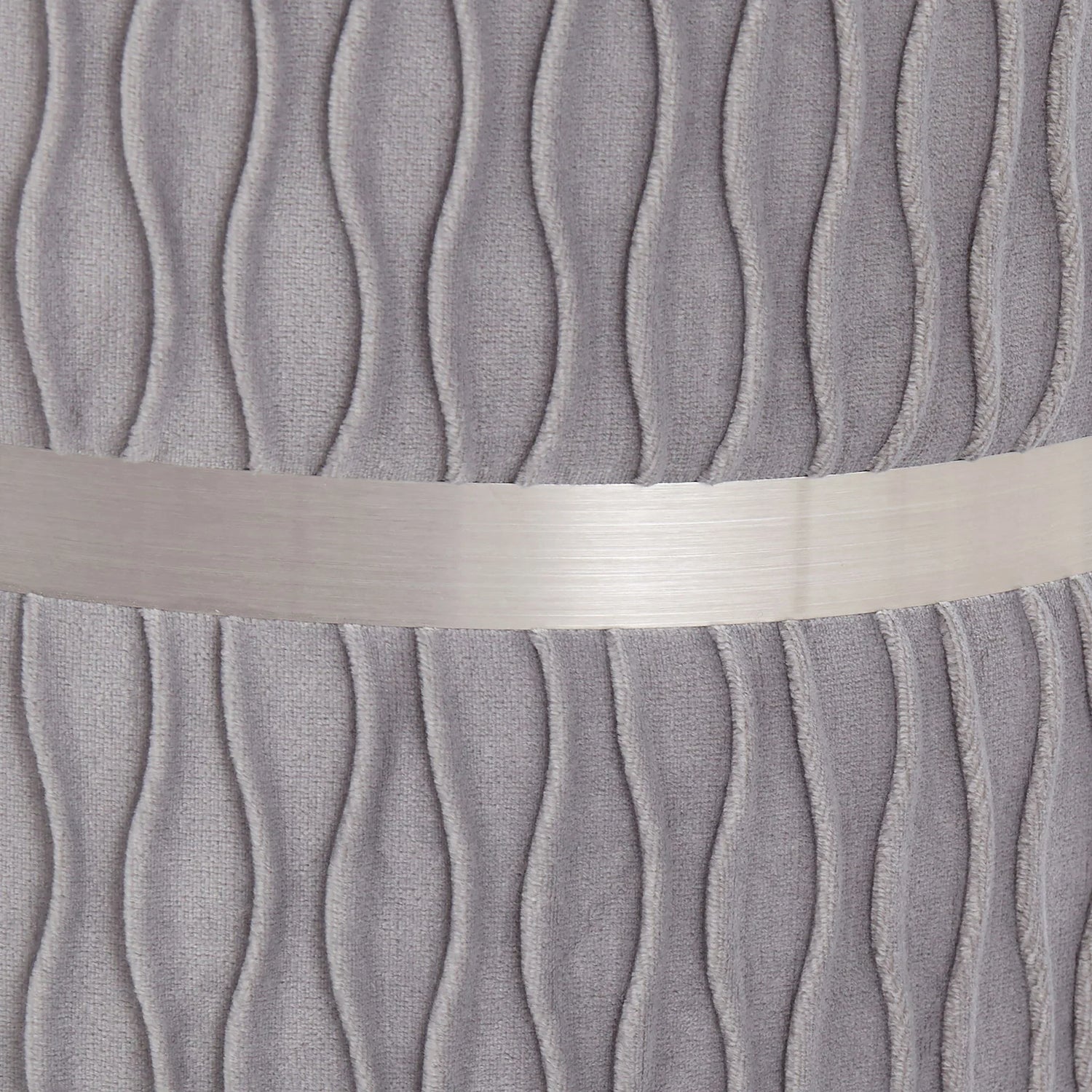 Daily use is effortless: the ottomans are fully assembled out of the box and ready to place where you need a soft perch or compact side table alternative. Each piece pairs a cushioned top with a sculpted, textured base in pearl silver fabric and a sleek steel band that reflects light and adds visual contrast—an instant accent that reads designer without demanding special care.