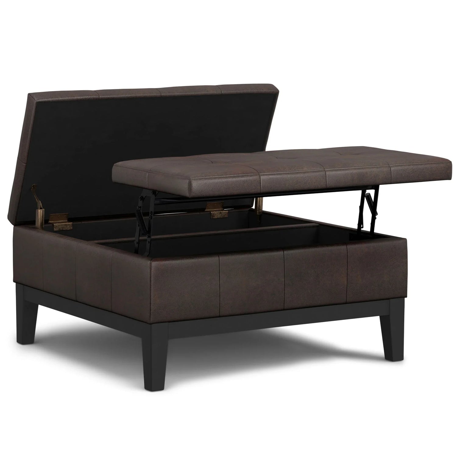 Dover - Lift Top Coffee Table Storage Ottoman - Distressed Brown