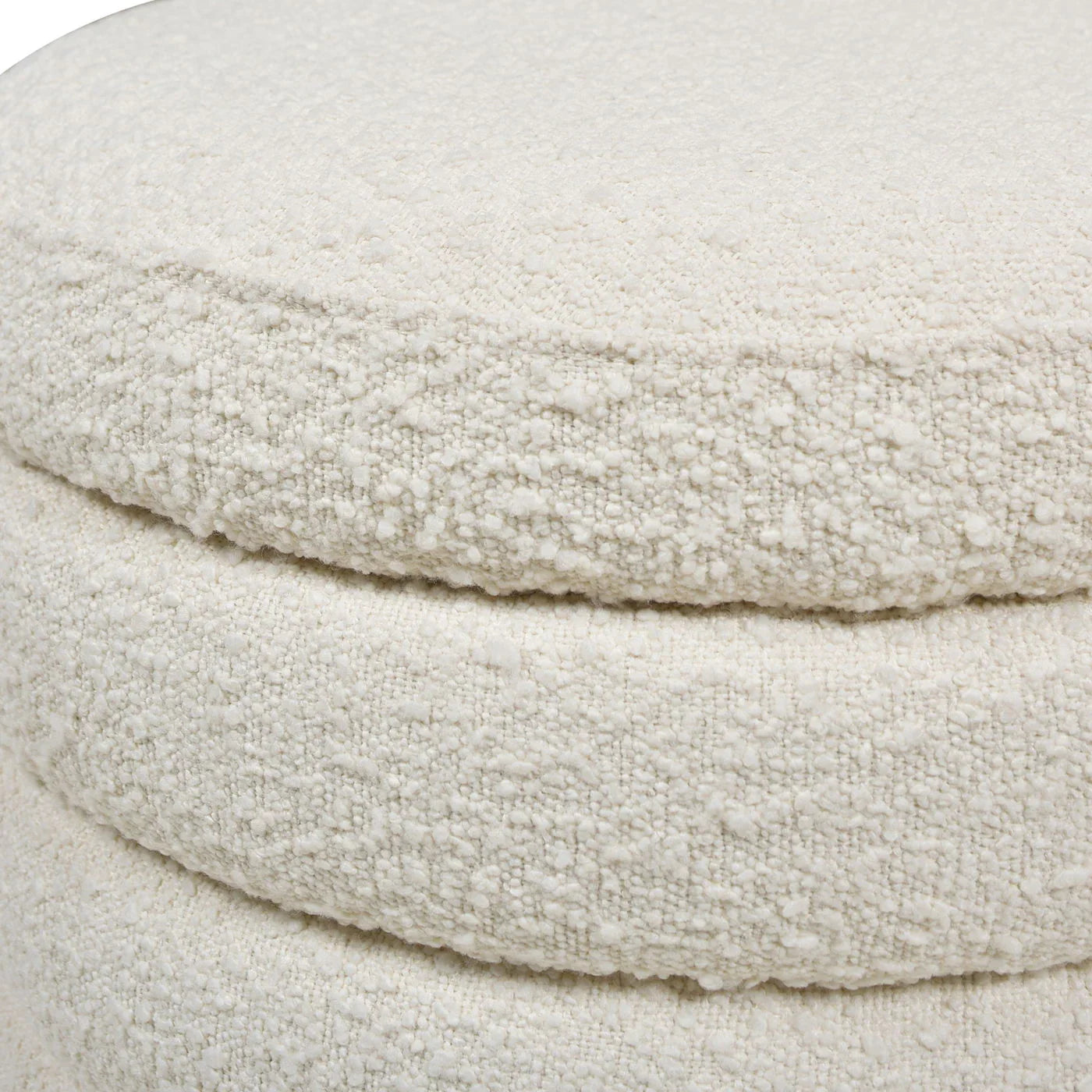 Perfect for living rooms, reading nooks, or entryways where you want extra seating and hidden storage, the Fuji Oversized Round Storage Ottoman pairs sculptural presence with everyday function. Handmade by master craftsmen, this round ottoman features a stacked-ring profile and a plush, textured upholstery that reads modern yet warm—ideal for design-conscious homes that need multipurpose pieces.