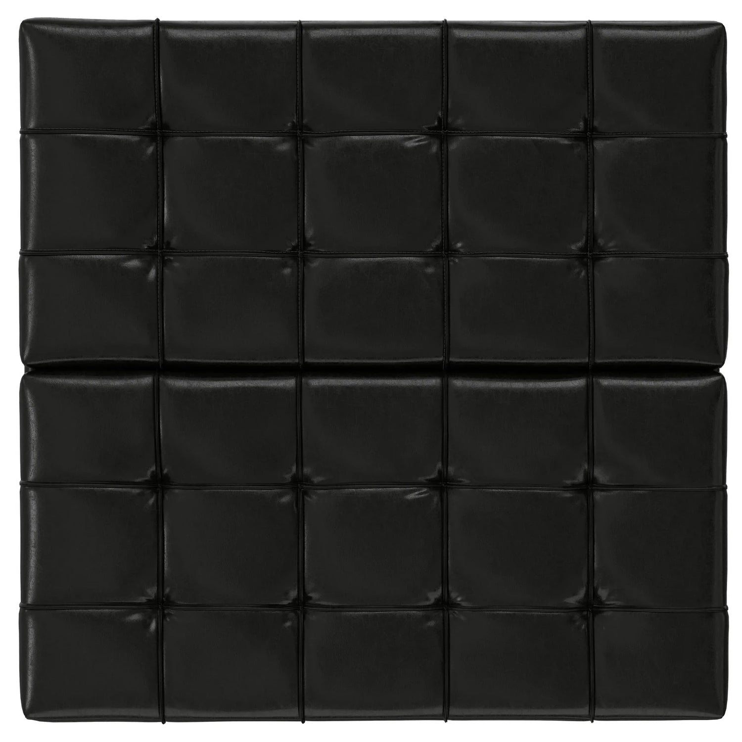 - Upholstered in a durable Midnight Black Vegan Faux Leather with stitched tufting detail.