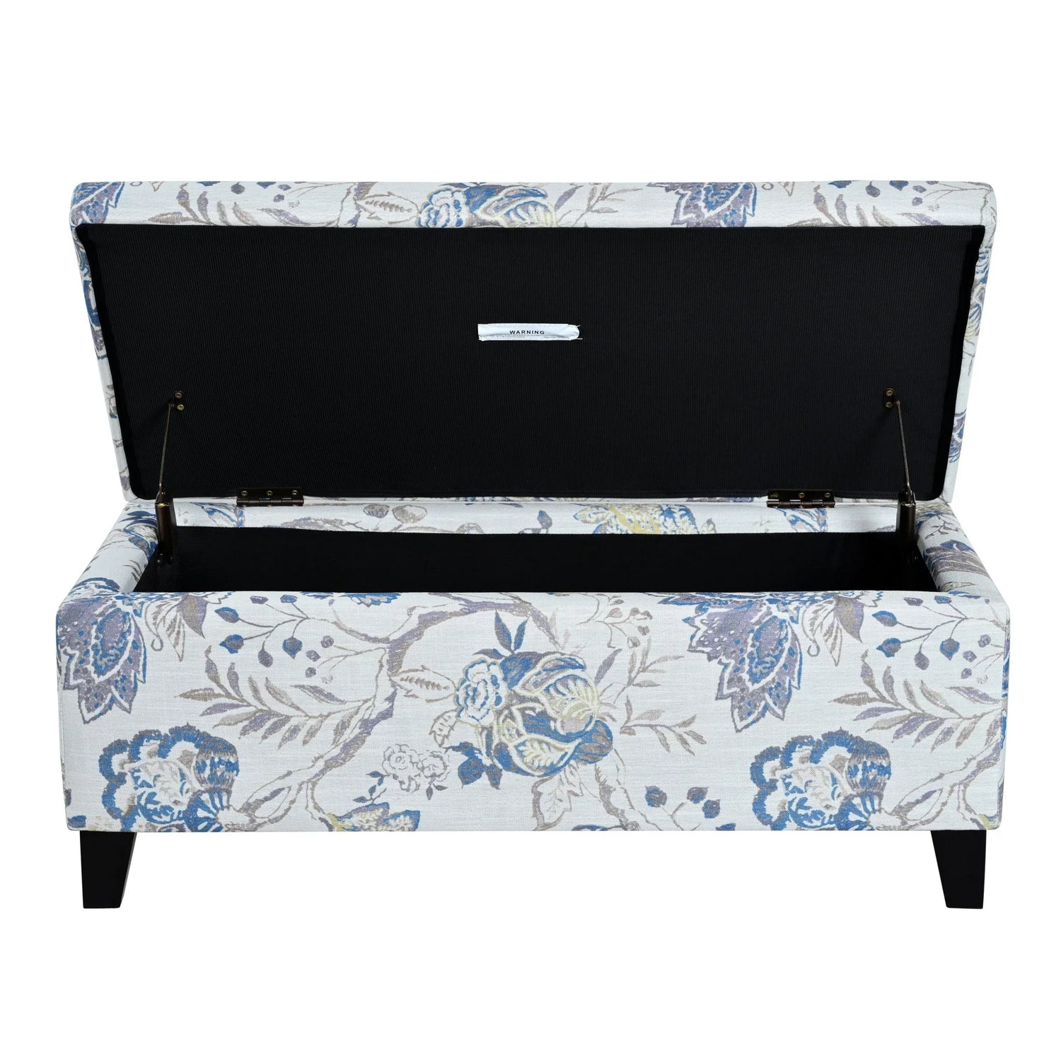 Luxury Storage Ottoman With Floral Patterned Fabric, Soft Close Hinges, Functional Footrest & Seat - Blue Flower / Blue Multi is backordered and will ship as soon as it is back in stock.