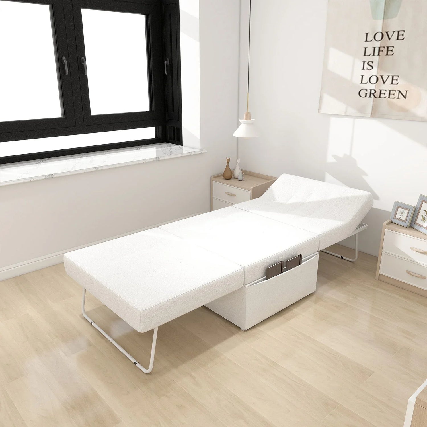 Modern Convertible Sofa Bed 4 In 1 Folding Ottoman Sleeper With Adjustable Backrest - White