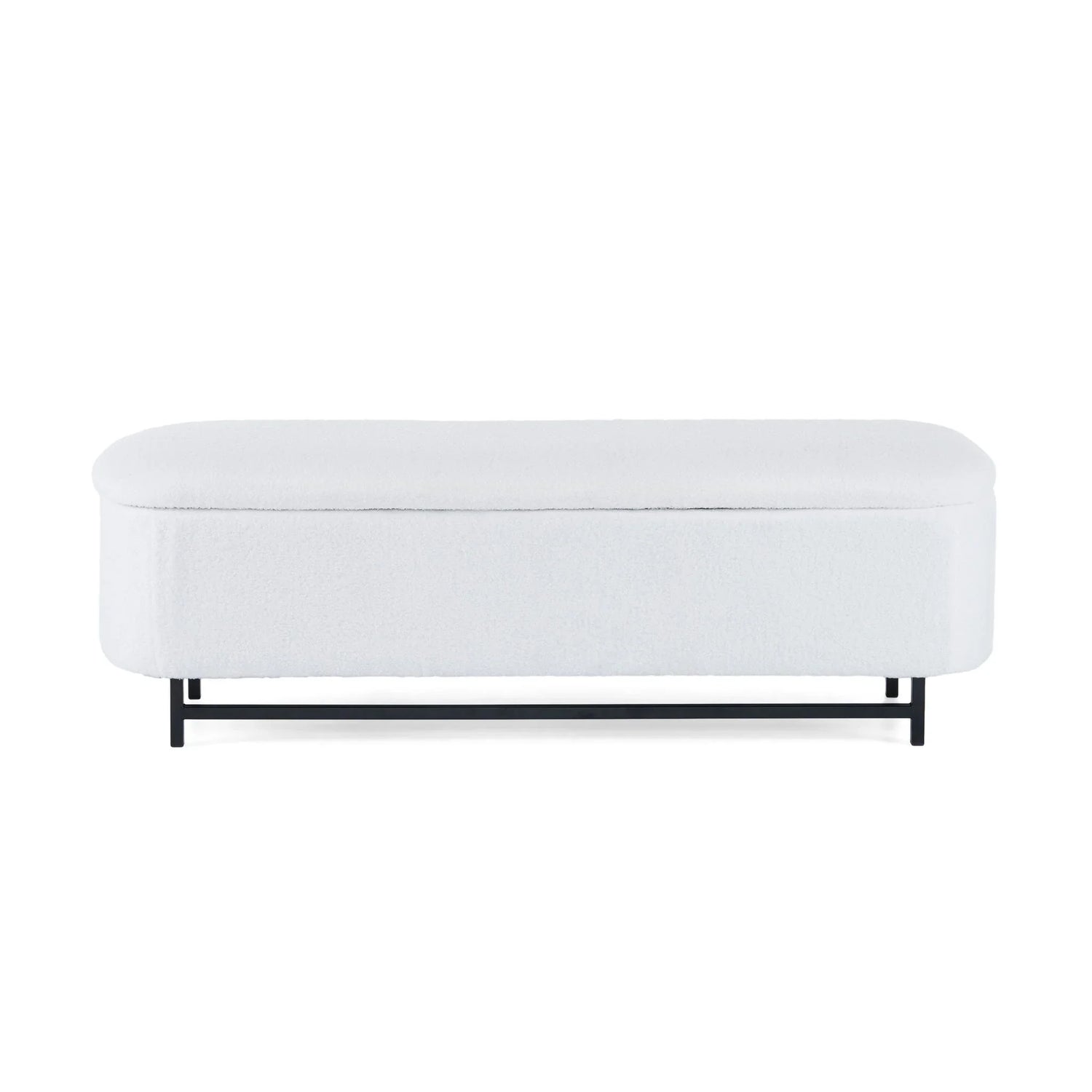 Modern Elegant Ottoman With Spacious Storage Function With Metal Feet - White / Black
