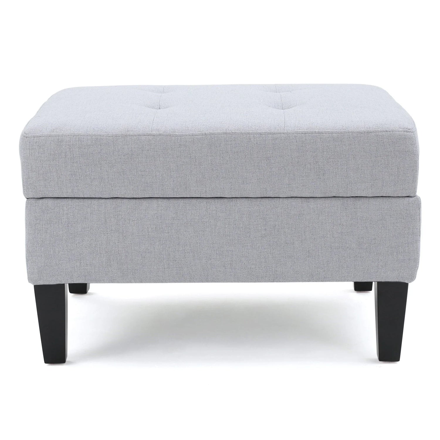Contemporary Storage Ottoman With Tufted Waffle Stitching - Light Gray
