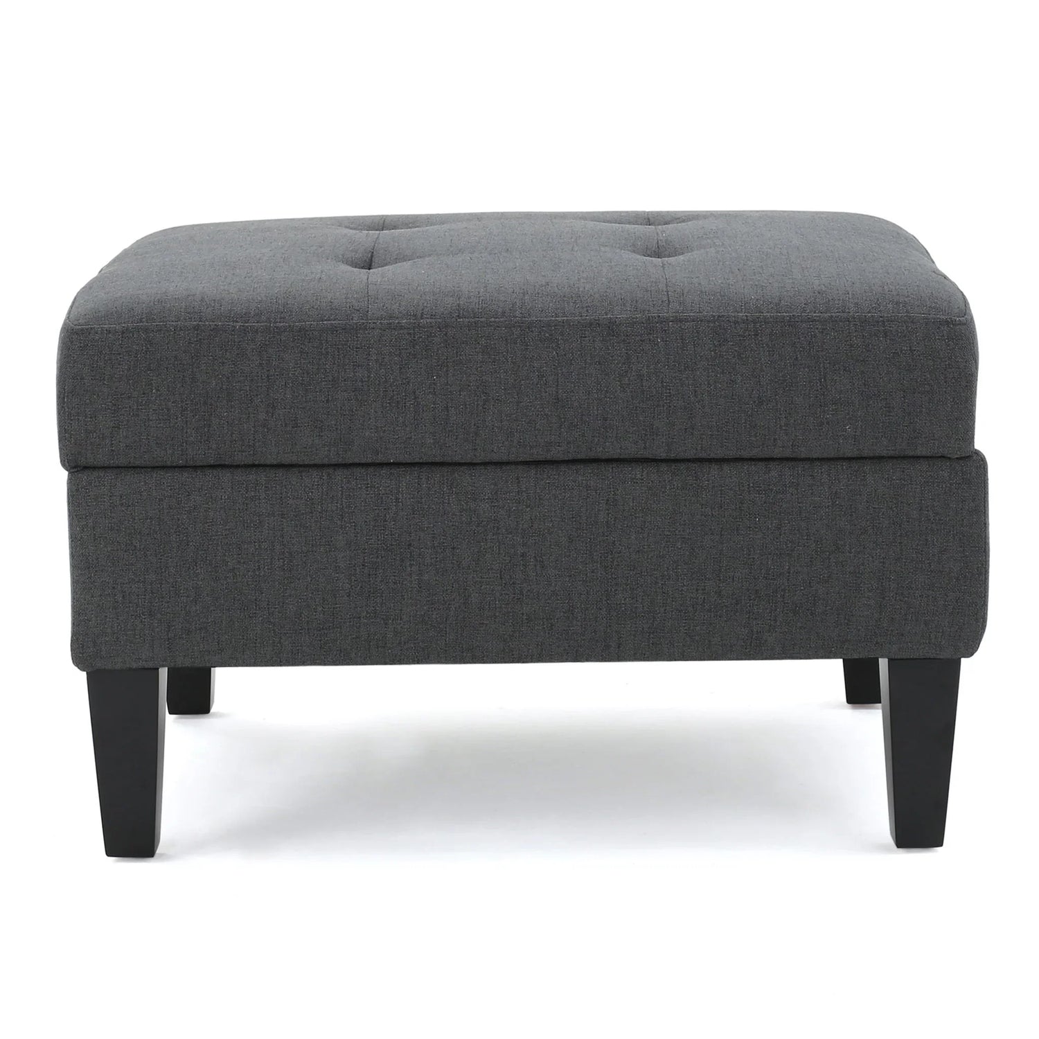 Contemporary Storage Ottoman With Tufted Waffle Stitching - Dark Gray