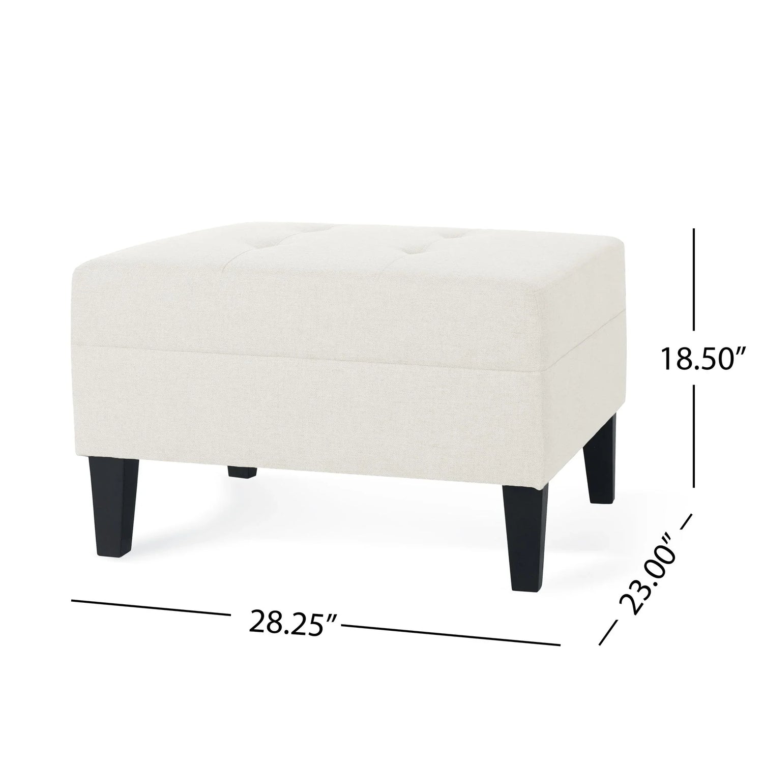 Ottoman With Birch Wood Legs And Cushioned Top For Comfort - Ivory