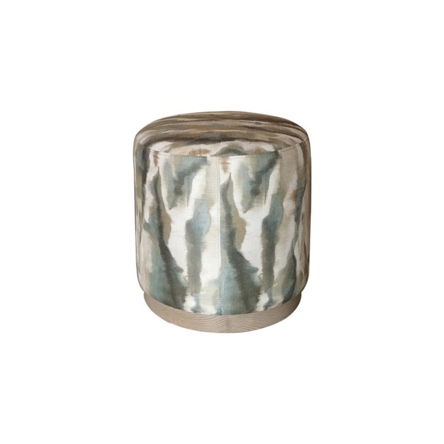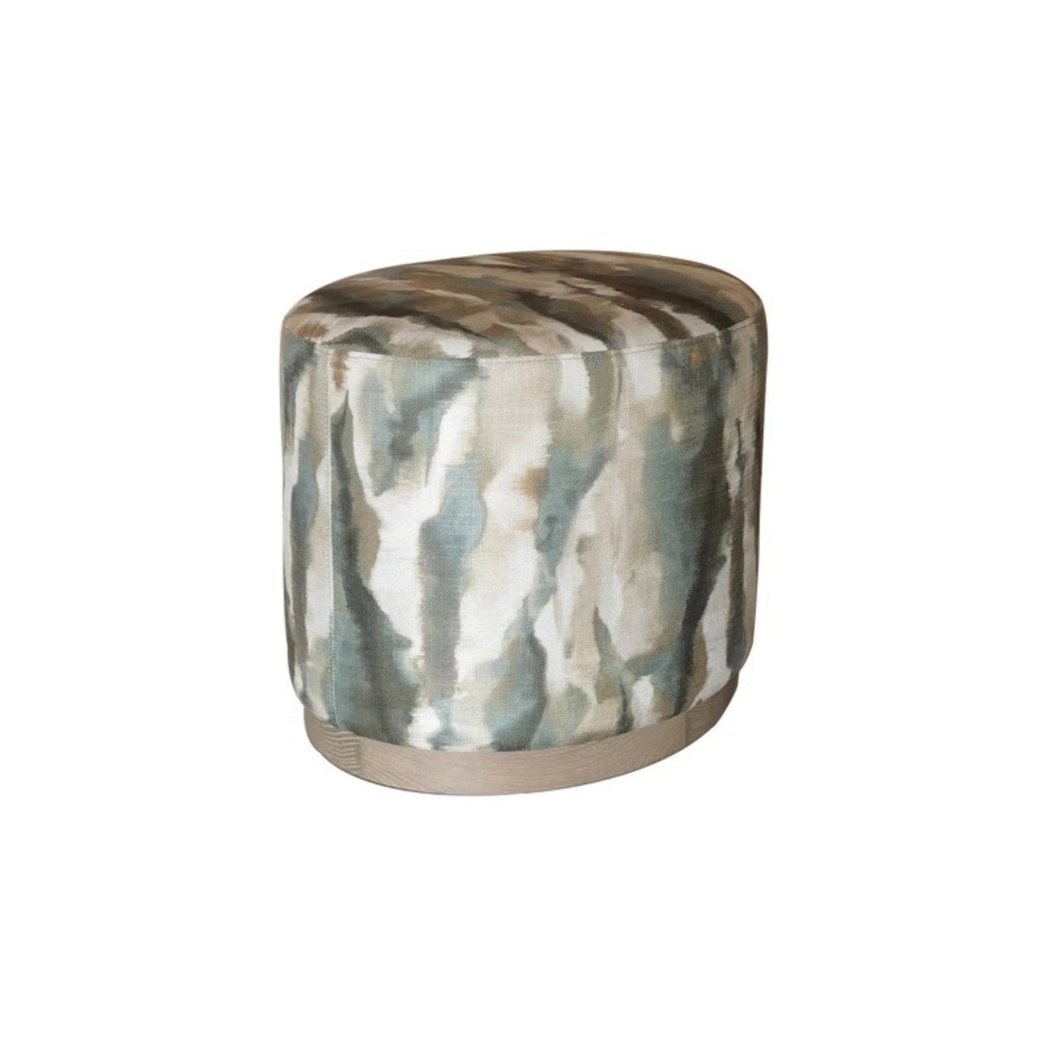 Designed for everyday use, the ottoman pairs a sturdy plywood frame and high-density foam seat with an elegant red oak base finished in a natural tone. The gently rounded silhouette and watercolor-like upholstery pattern introduce a soft, contemporary accent that complements modern, coastal, and transitional interiors. No assembly required — simply place and enjoy.