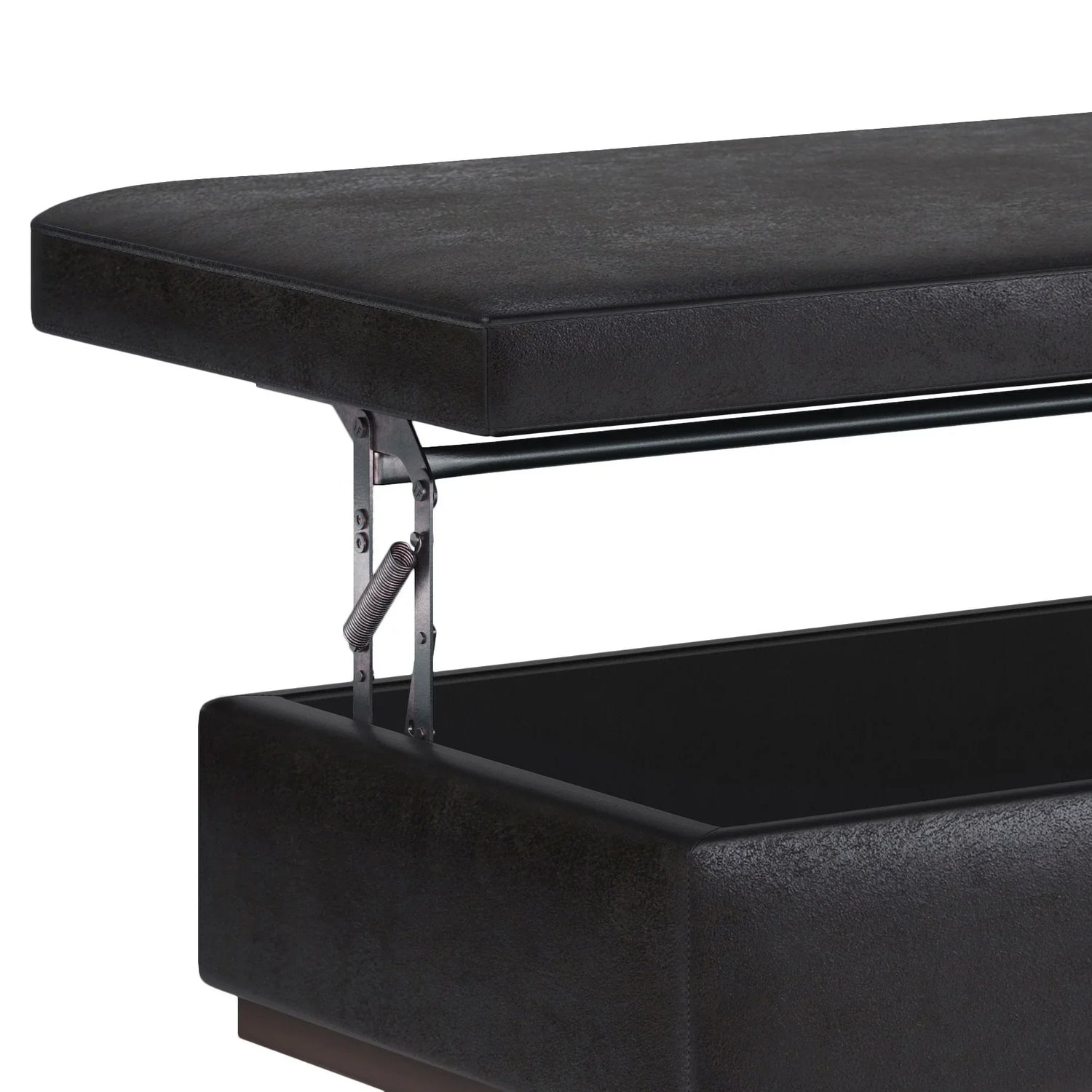 Owen - Lift Top Large Coffee Table Storage Ottoman - Distressed Black
