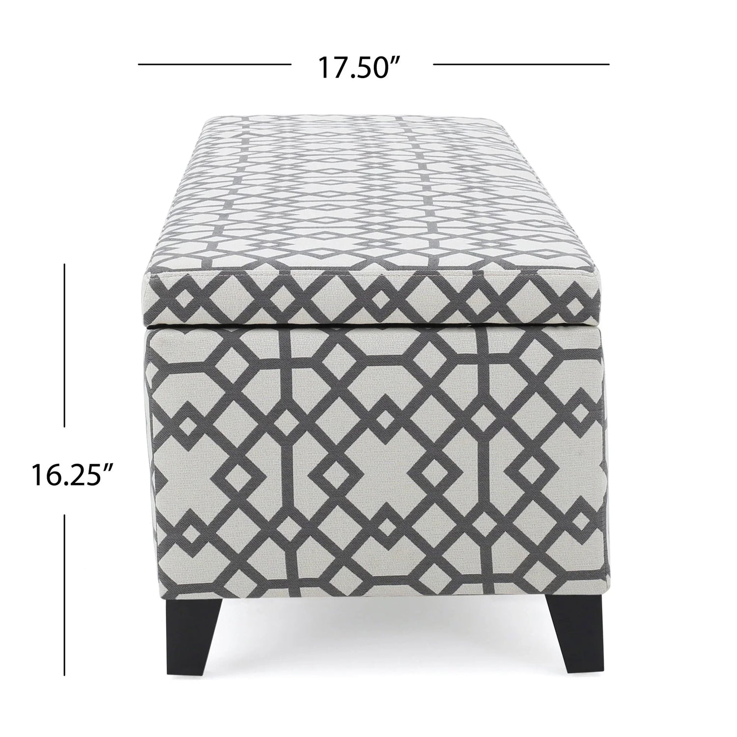 • POLYESTER BLEND UPHOLSTERY: Wrapped in a polyester blend with a geometric pattern in neutral gray and white tones, adding a modern touch to any decor.