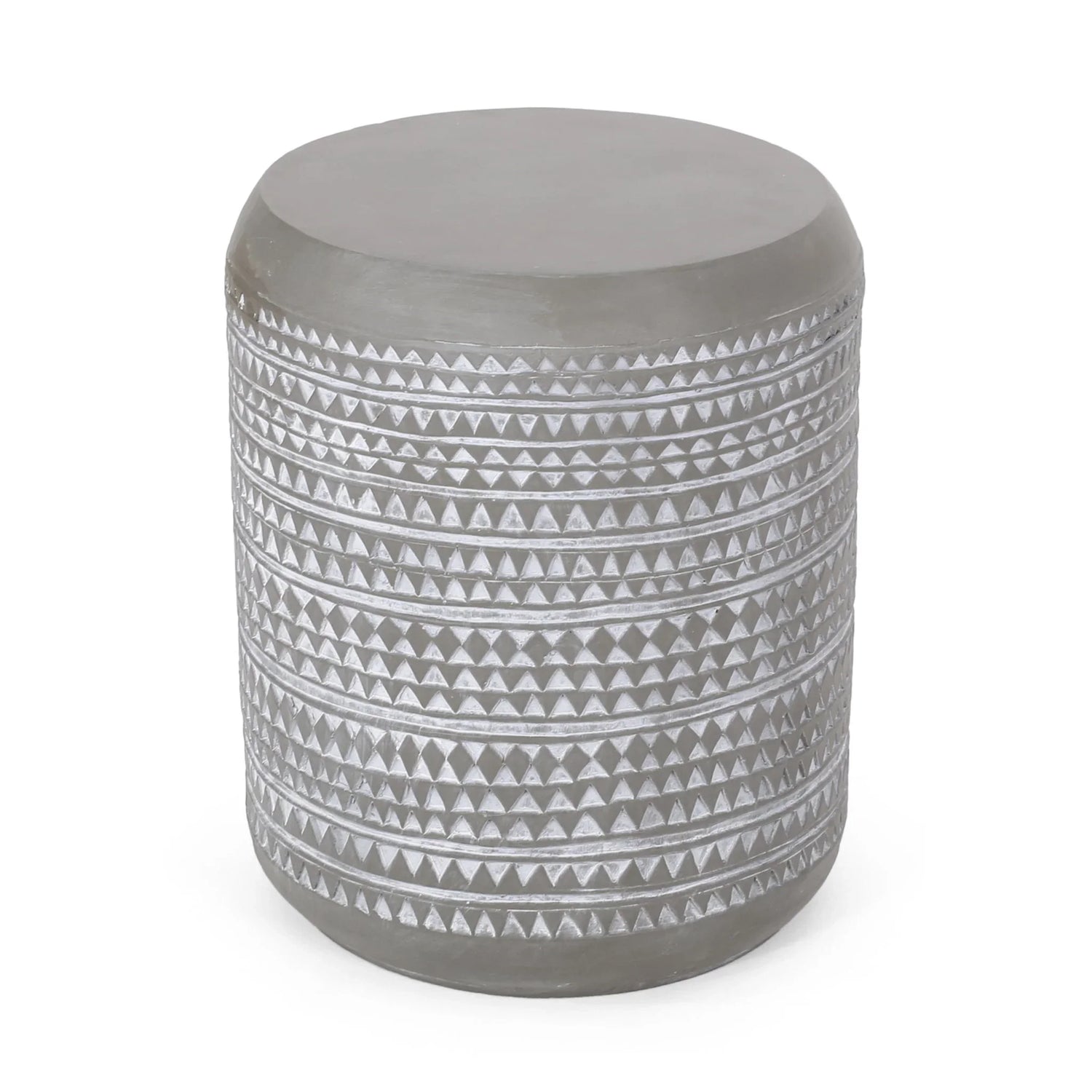- A Touch of Personality: Add charm to your outdoor space with this end tables simple cylindrical structure and detailed triangular design,perfect for enlivening any home.