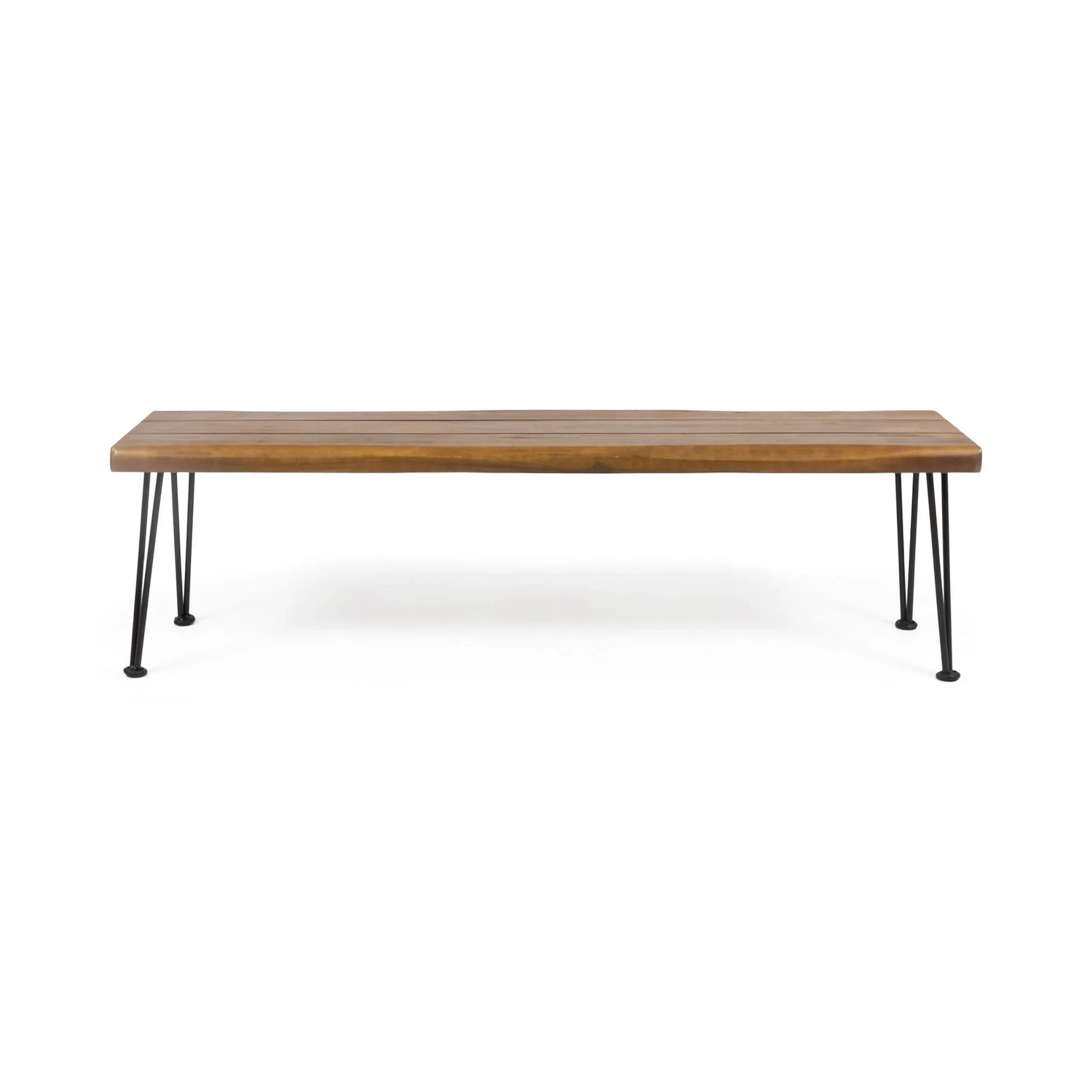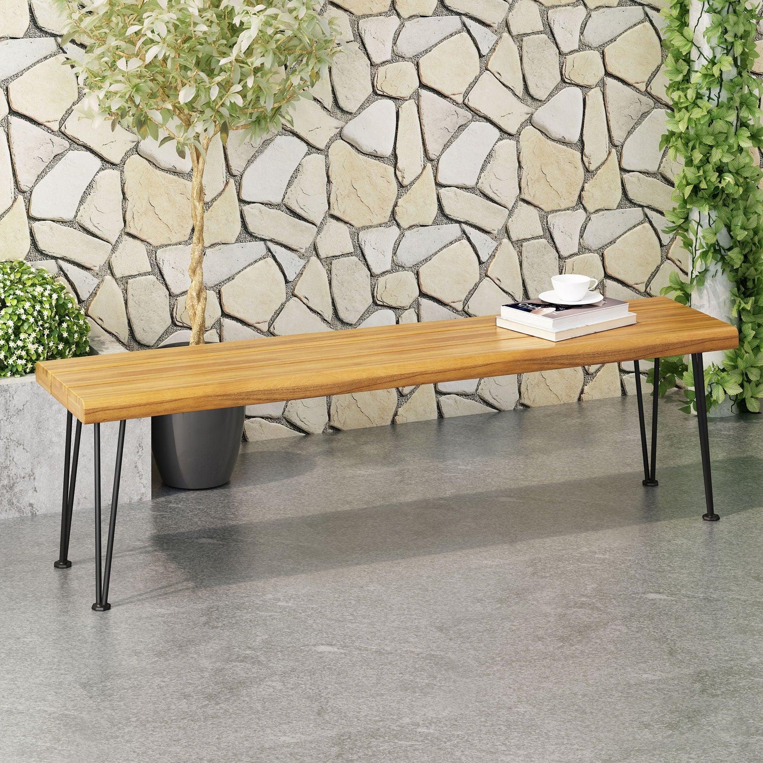 Zion - Industrial Wood And Metal Rectangular Bench With Faux Live Edge Design - Teak