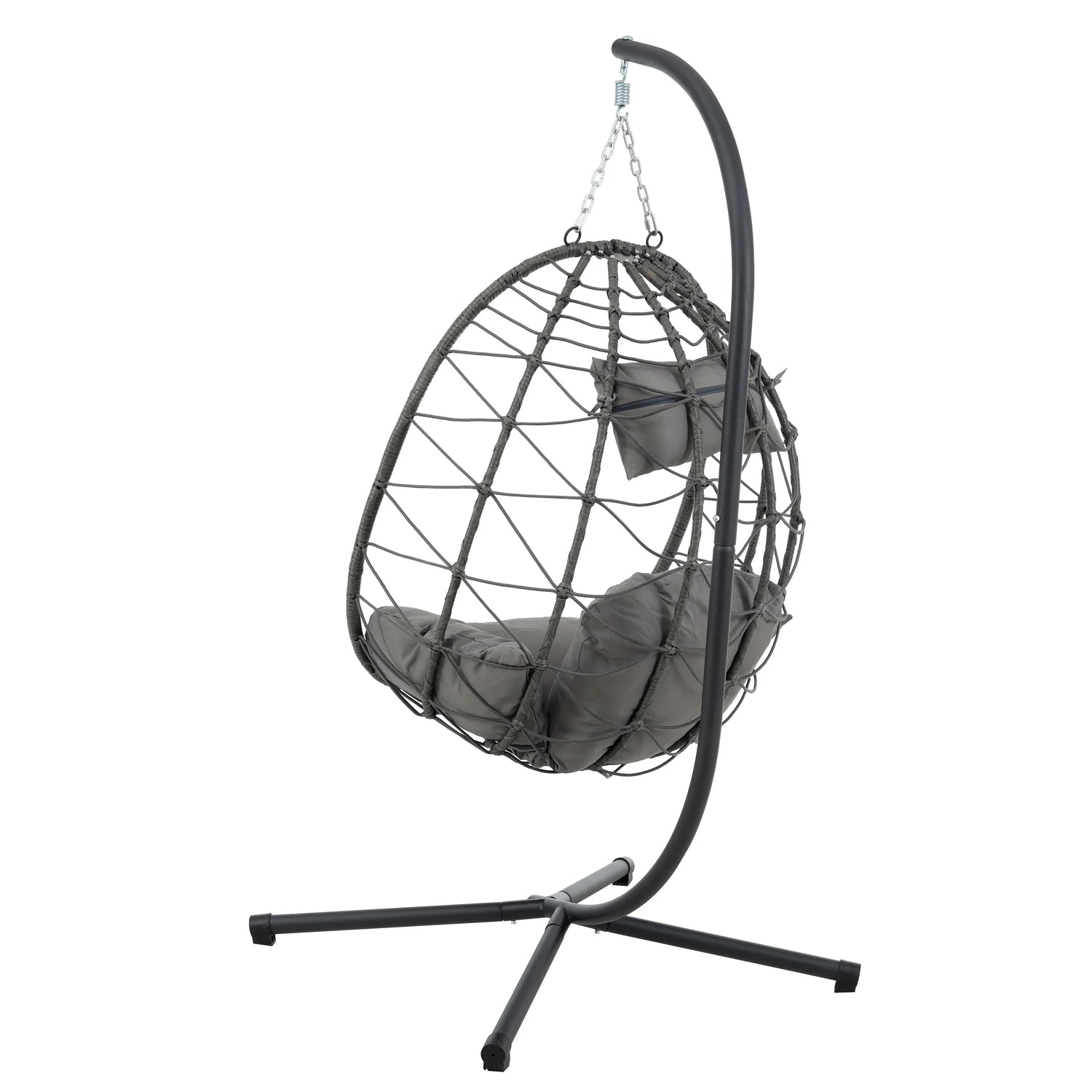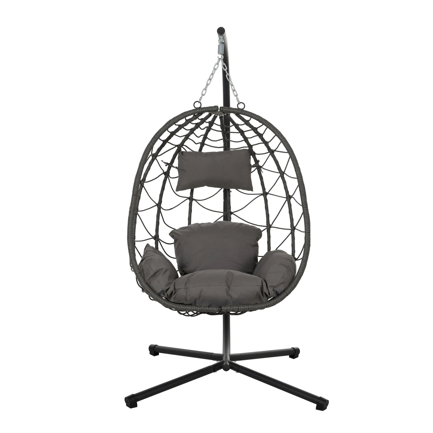 Everyday use is simple: the suspended egg-style shell cradles you while the included plush cushions create a comfortable spot for lounging. Built on a sturdy steel stand with a woven shell and deep seat cushion, this outdoor chair balances visual lightness with solid construction—ideal for casual afternoons and slow evenings outdoors. Note: natural materials and screen displays may show slight color variation.