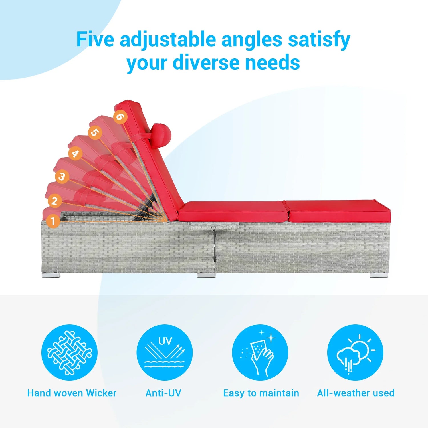 Perfect for poolside lounging, a sunny patio, or a quiet garden corner, this two‑piece outdoor chaise lounge set is designed for people who want relaxed comfort with a clean, traditional look. The low‑profile rattan base and fully cushioned reclining backs make it easy to stretch out for sunbathing, reading, or afternoon naps while keeping a refined American‑traditional aesthetic.