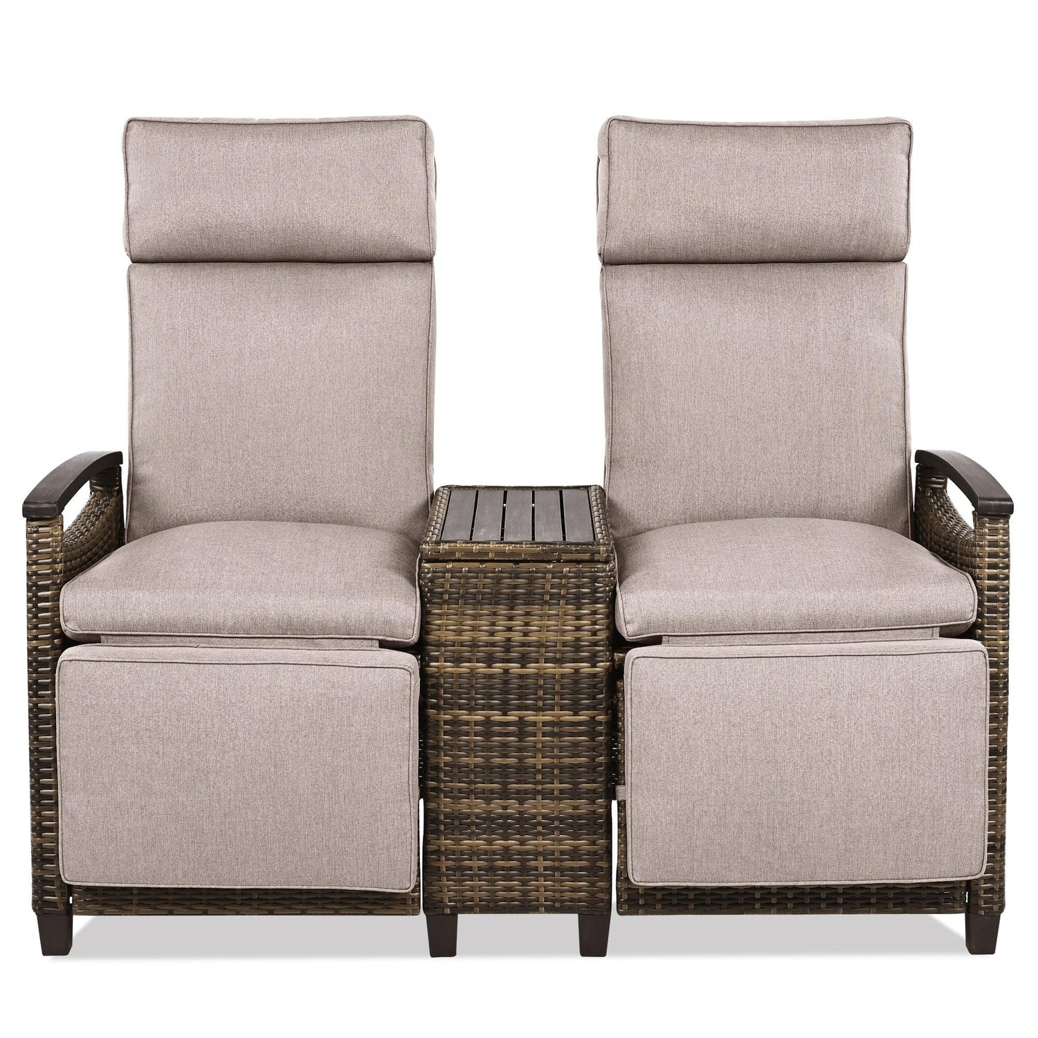 Pairing relaxed, full‑body comfort with practical storage, this 2‑person outdoor reclining chaise is made for patios, poolside nooks, and covered porches where two people want to lounge together without sacrificing personal adjustability. The high, supportive backrests, wide armrests and full‑length cushions cradle the body from head to toe, while the built‑in center table with hidden storage keeps drinks, books and sunglasses within reach for easy, low‑effort entertaining.