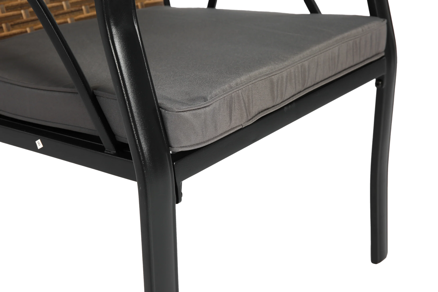 • Effortless style: brown woven texture with gray cushion accents blends with most outdoor palettes.