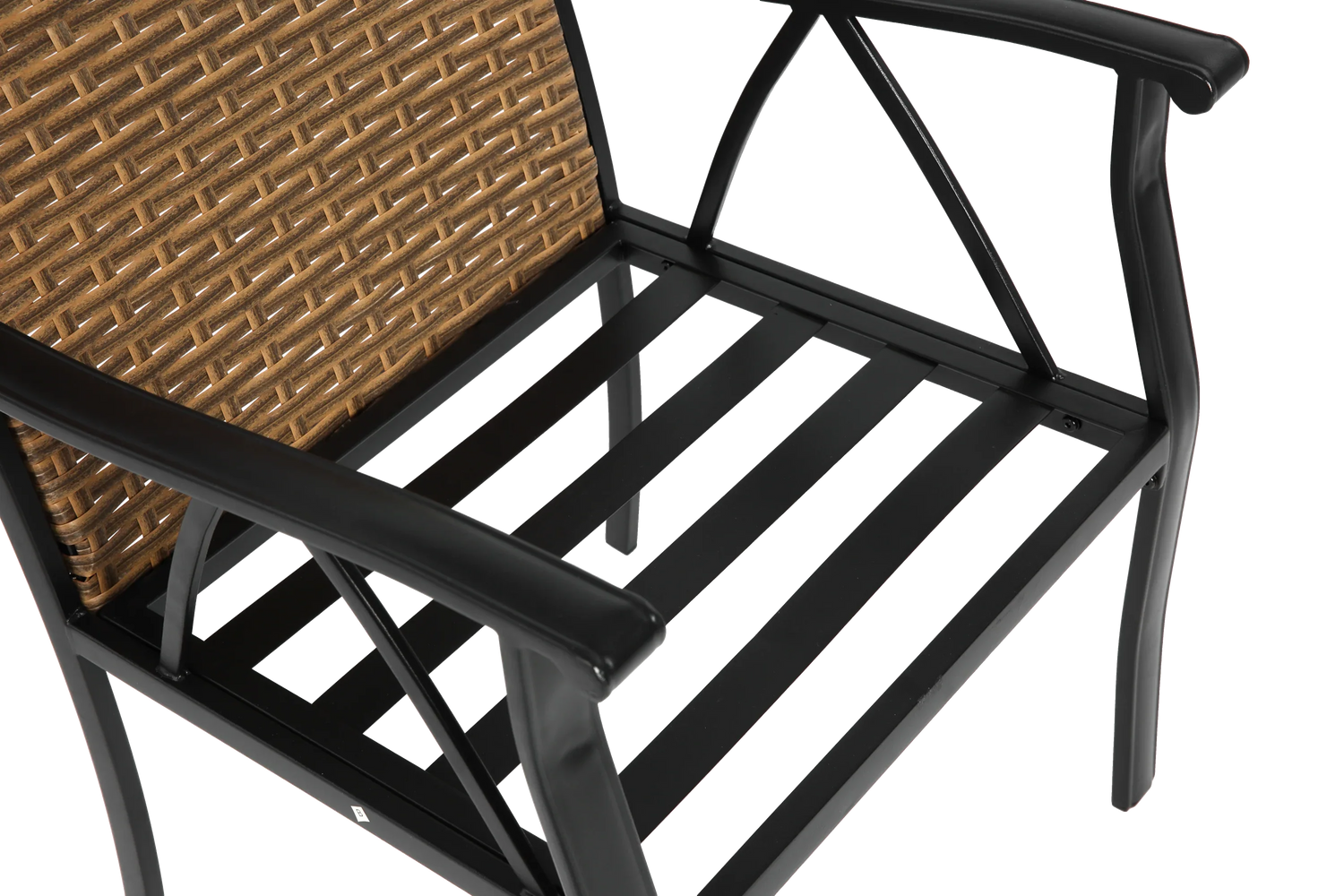 • Easy daily care: synthetic wicker and steel surfaces wipe clean and hold up to typical patio conditions.