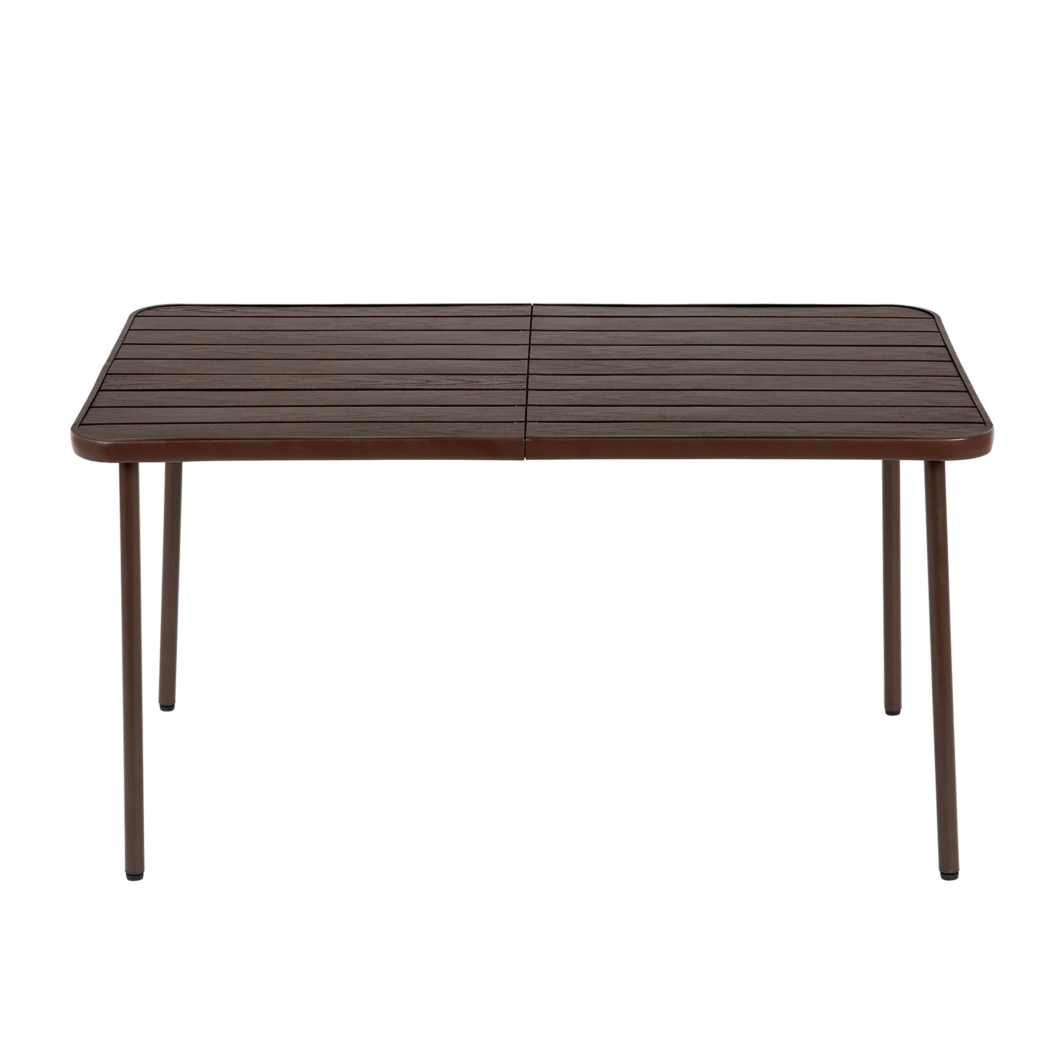 The 7 Piece Patio Dining Set is designed for people who want a straightforward, durable outdoor dining solution that fits patios, pool decks, and small terraces. With a warm brown steel finish and clean slatted silhouettes, this set works well for casual family meals, weekend barbecues, or everyday al fresco dining where low-maintenance materials and a cohesive look matter.