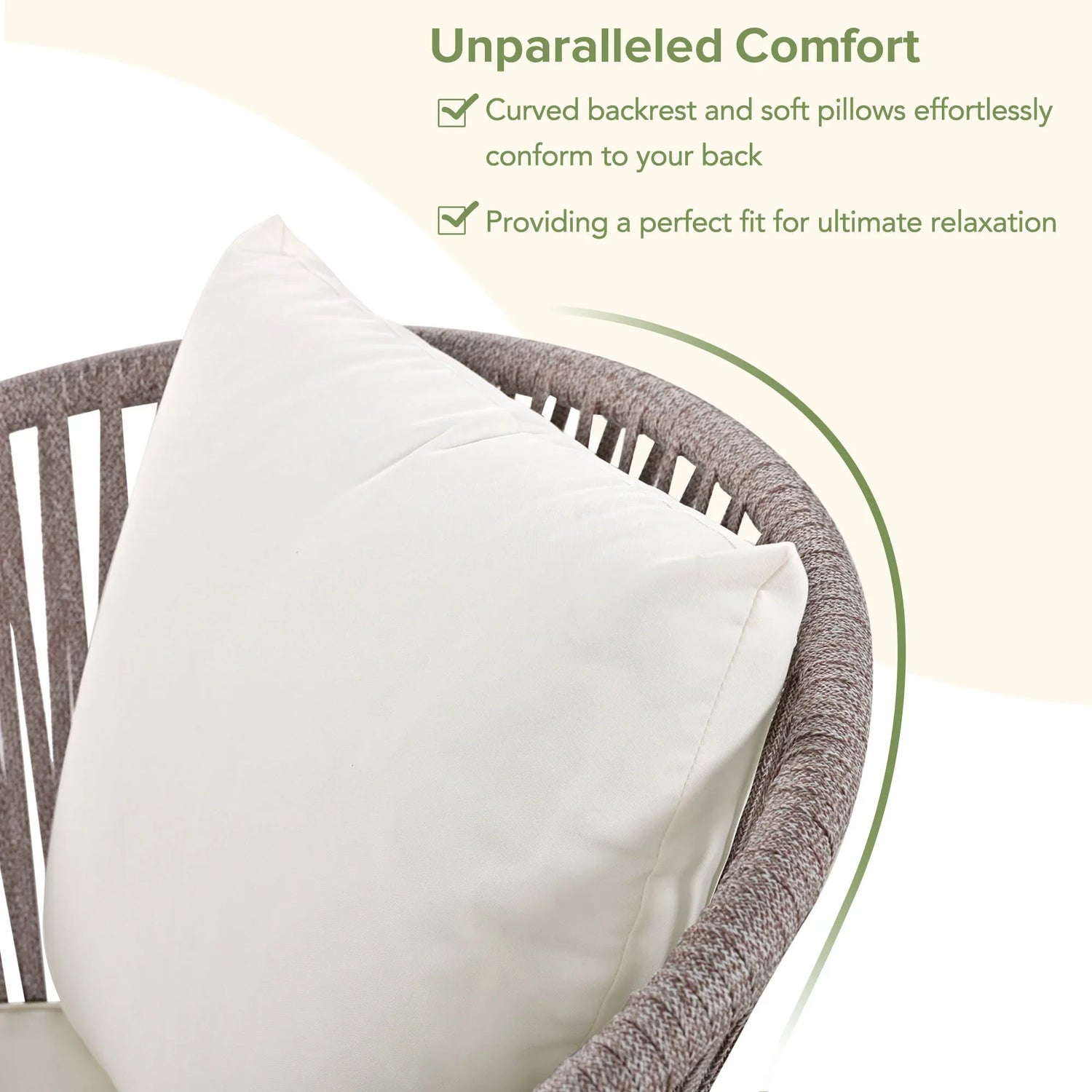 • Perfect for any Place: Featuring classic beige rope weaving, this set adds a touch of contemporary flair to any outdoor space. Perfect for any outdoor setting, this set seamlessly blends style and functionality.