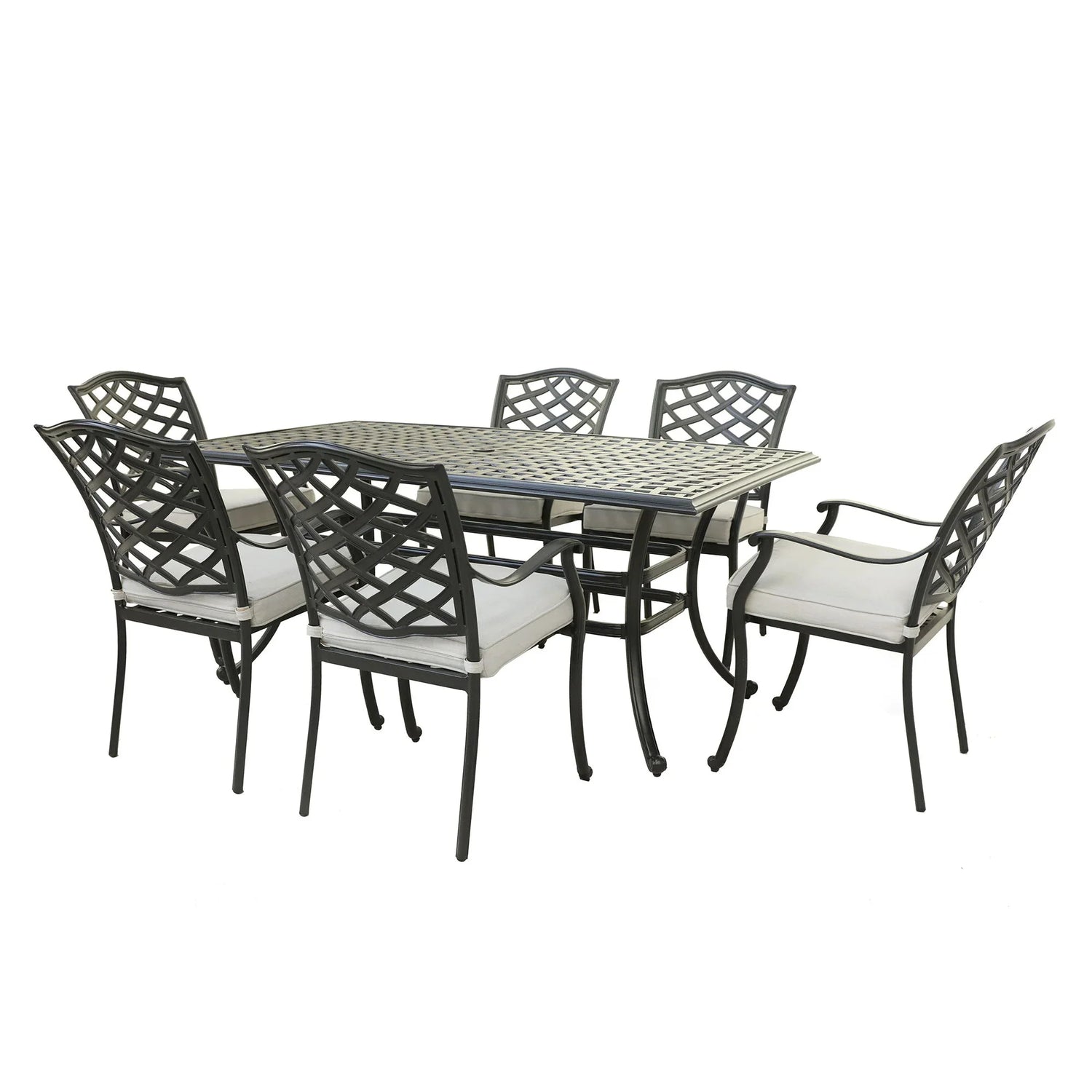 • Spacious Rectangular Table: Accommodates six people comfortably, with a 2-inch umbrella hole for added convenience.