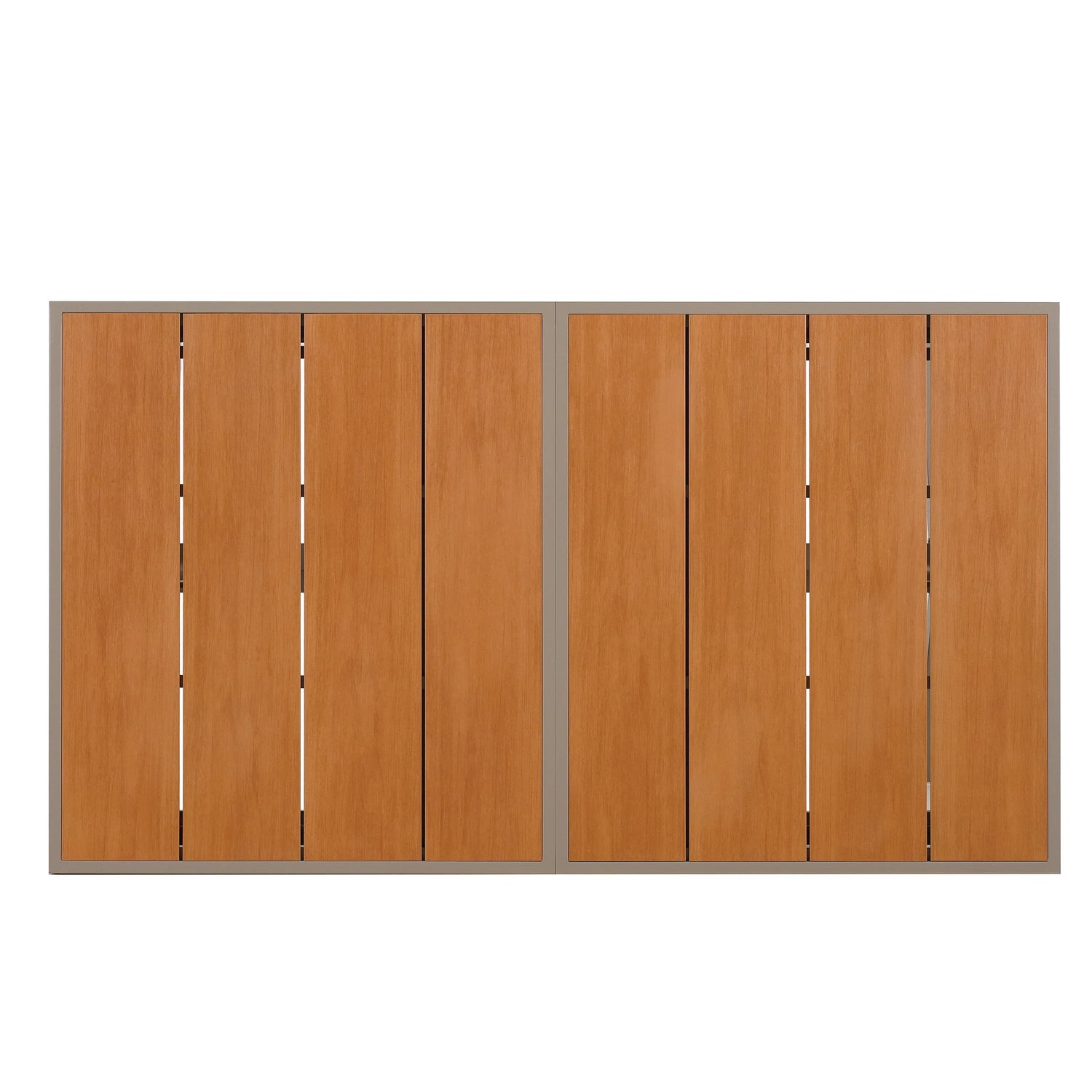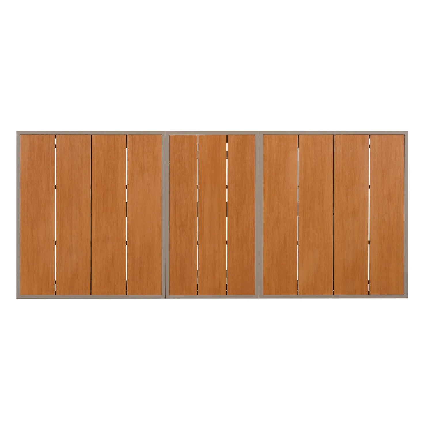 - Main materials: Iron frame with plastic (wood‑look) slatted panels.