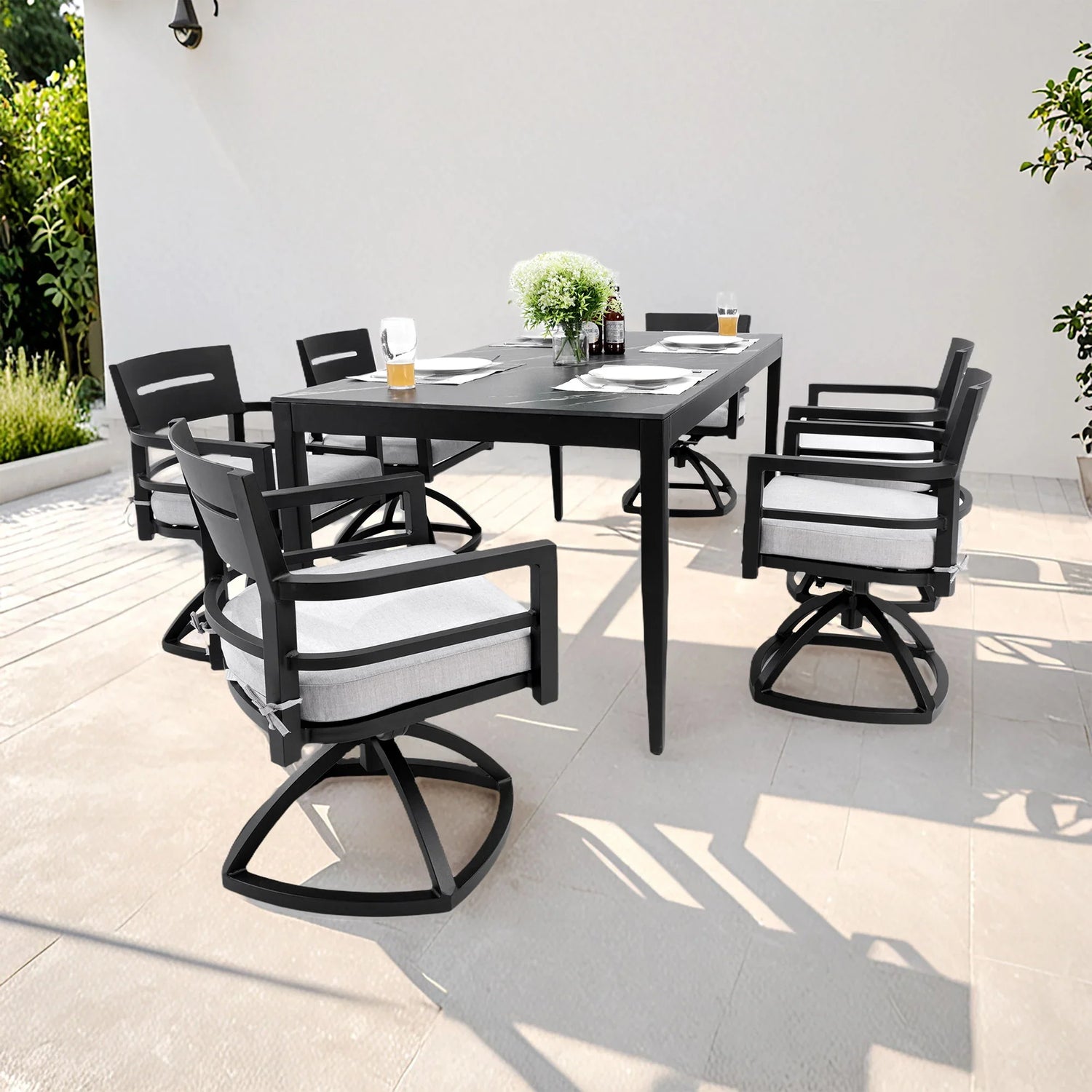 7 Pieces Modern Outdoor Patio Dining Set, Rectangular Dining Table, 6 Swivel Rockers With Sunbrella Cushions - Ember Black