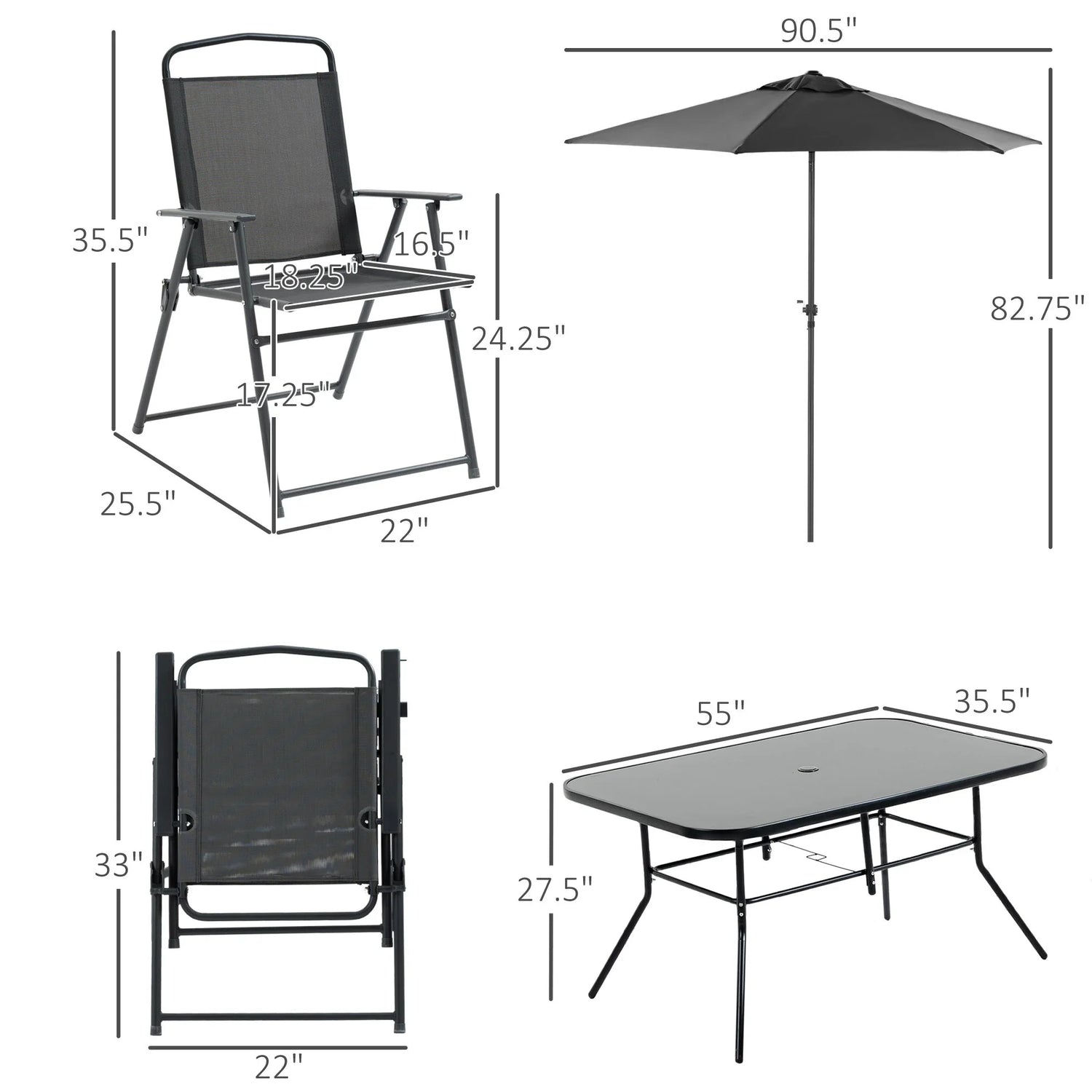 Outsunny - Patio Dining Set With Table Umbrella, Folding Chairs And Dining Table, Outdoor Patio Furniture Set - Black / 6 Piece Patio Dining Set is backordered and will ship as soon as it is back in stock.