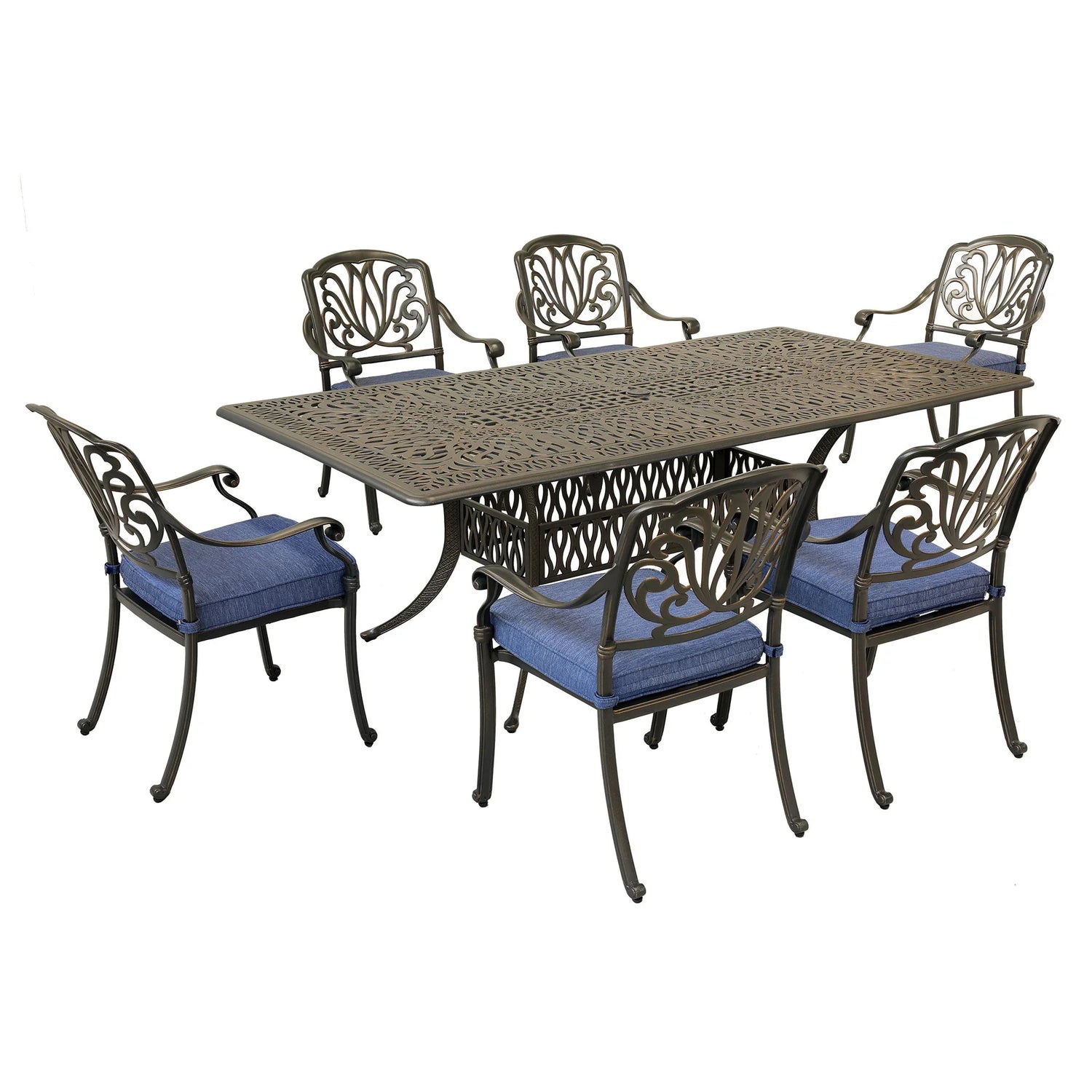 Rectangular 6 Person 84.25" Long Aluminum Dining Set With Cushions - Gray / Navy
