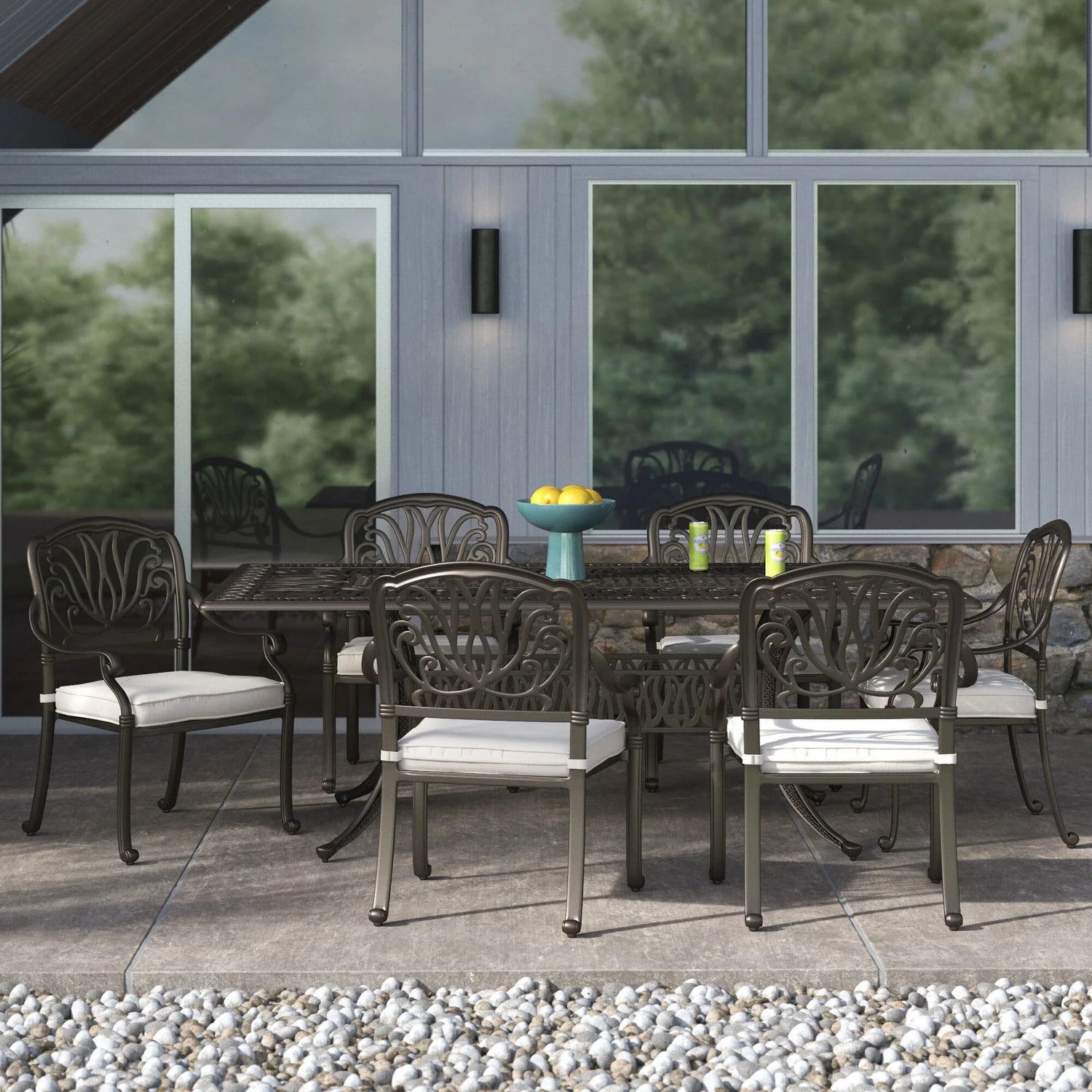 Rectangular 6 Person 84.25" Long Aluminum Dining Set With Cushions - Dark Gray / White