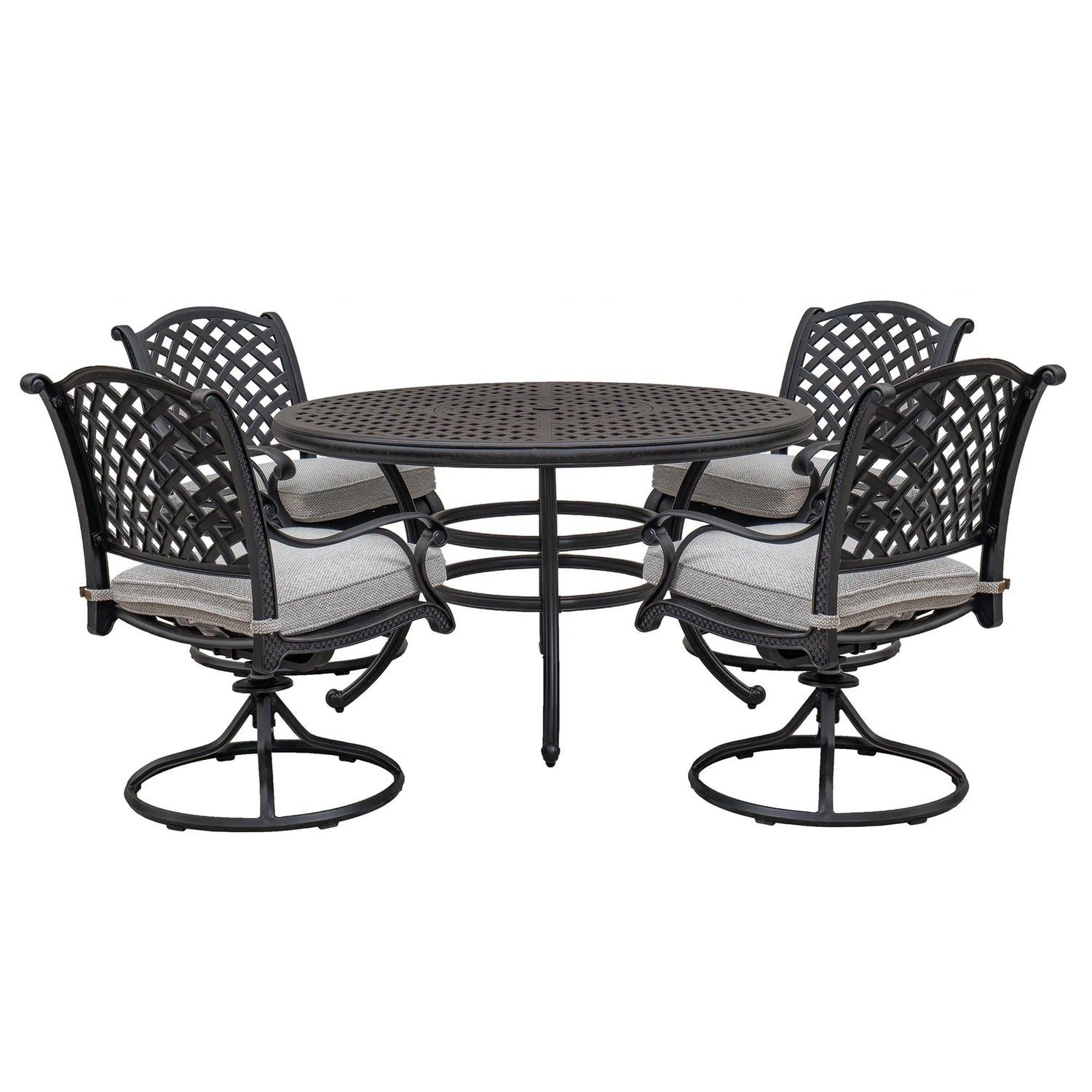 • 5-Piece Dining Set: Versatile set with four swivel chairs and a round table. Features a 2-inch umbrella hole for shade. Ideal for outdoor gatherings and patio dining.