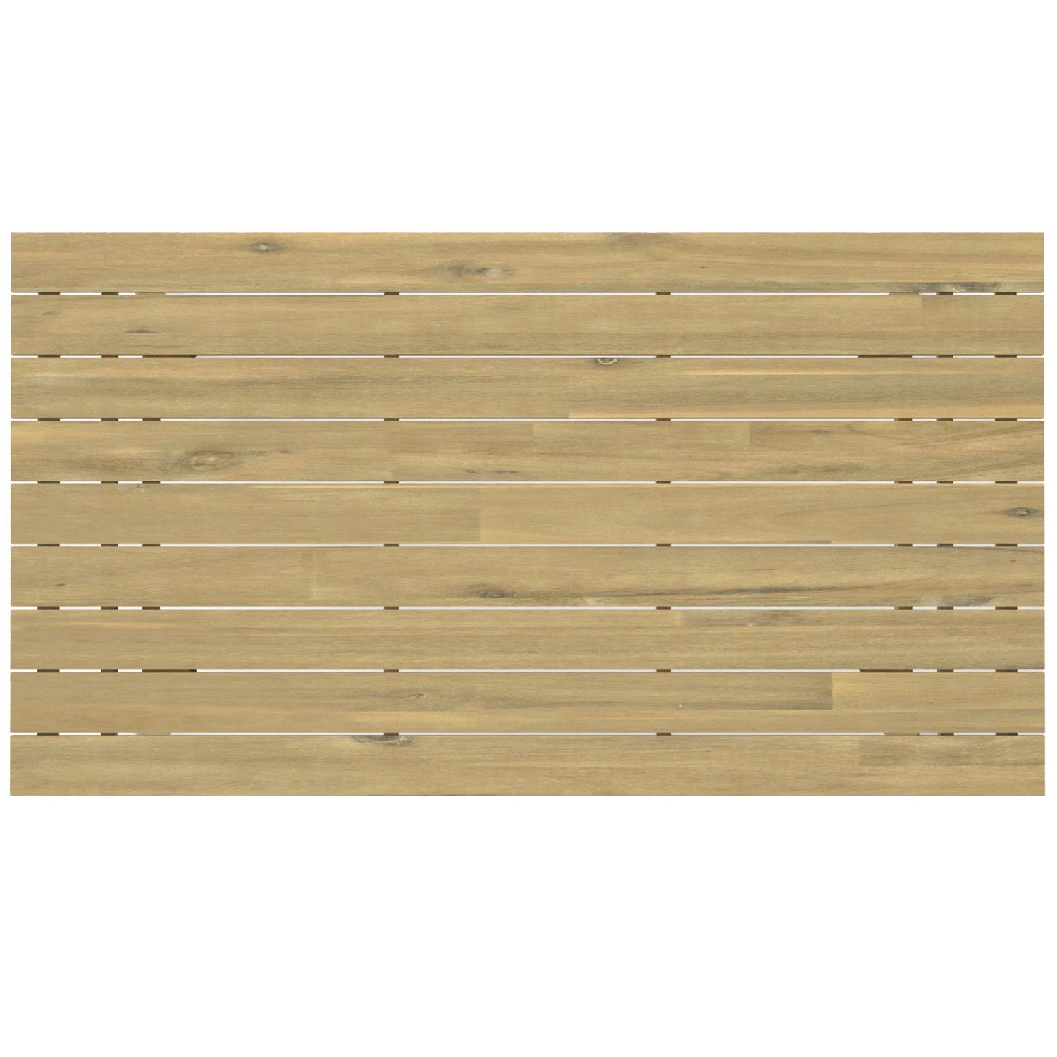 Handcrafted from solid acacia and finished in a Light Teak tone that highlights natural grain, the Kona table is made for everyday outdoor use when cared for properly. Its thick slatted top and sturdy angular legs give it a grounded, durable feel; pair it with outdoor dining chairs or a bench to create a comfortable, contemporary dining setting. Cover or store the table during inclement weather to preserve the finish.
