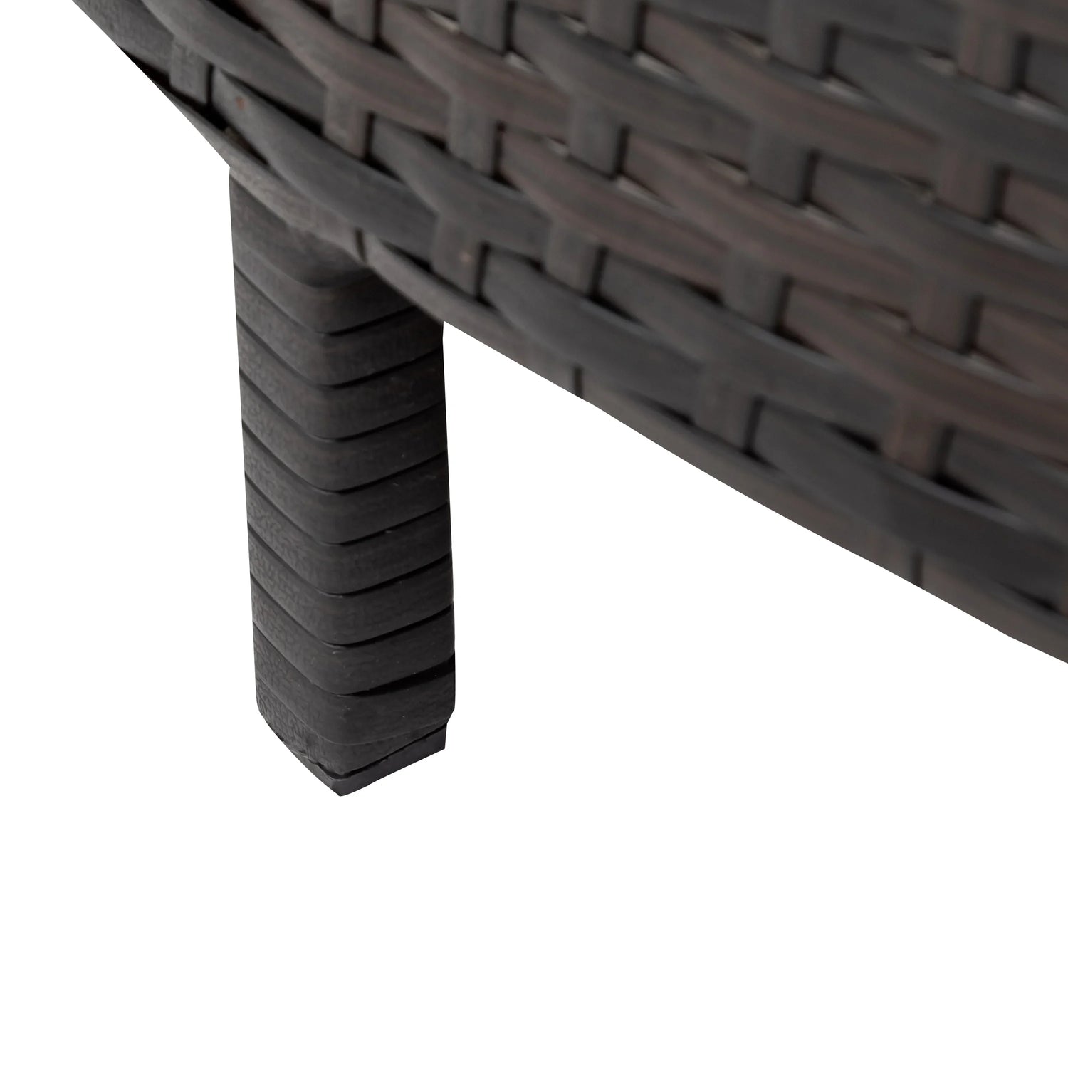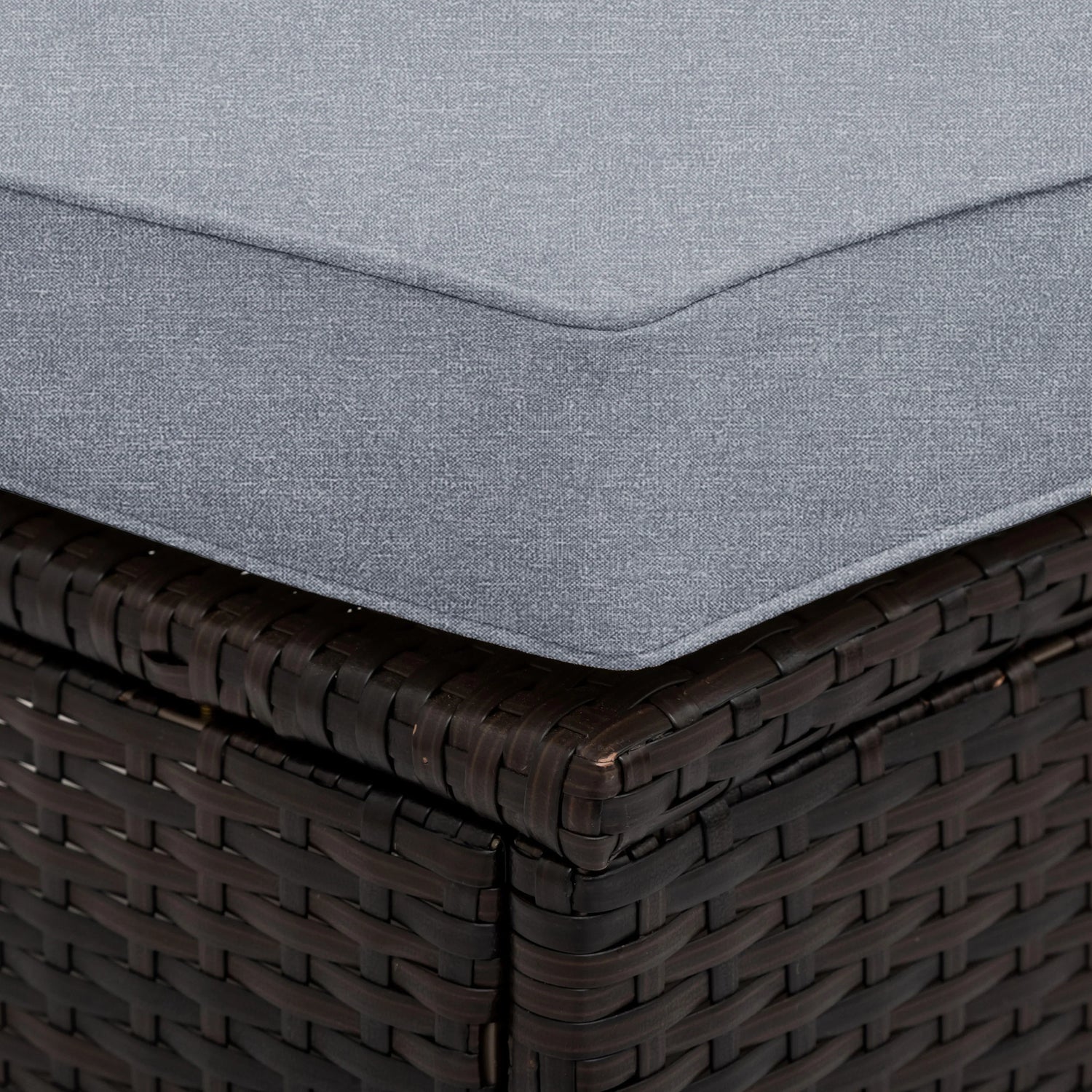 This set uses synthetic and natural materials commonly found in outdoor furniture. Natural variation in handwoven rattan and fabric color may occur; screen colors can differ from real-life tones. As with all freestanding outdoor furniture, place on level ground and avoid exposing to prolonged standing water. Use caution on uphill or uneven surfaces; secure lightweight pieces in very windy conditions. If you plan to stack or lean pieces for storage, follow safe lifting practices and avoid excessive vertical stacking that could lead to tipping.