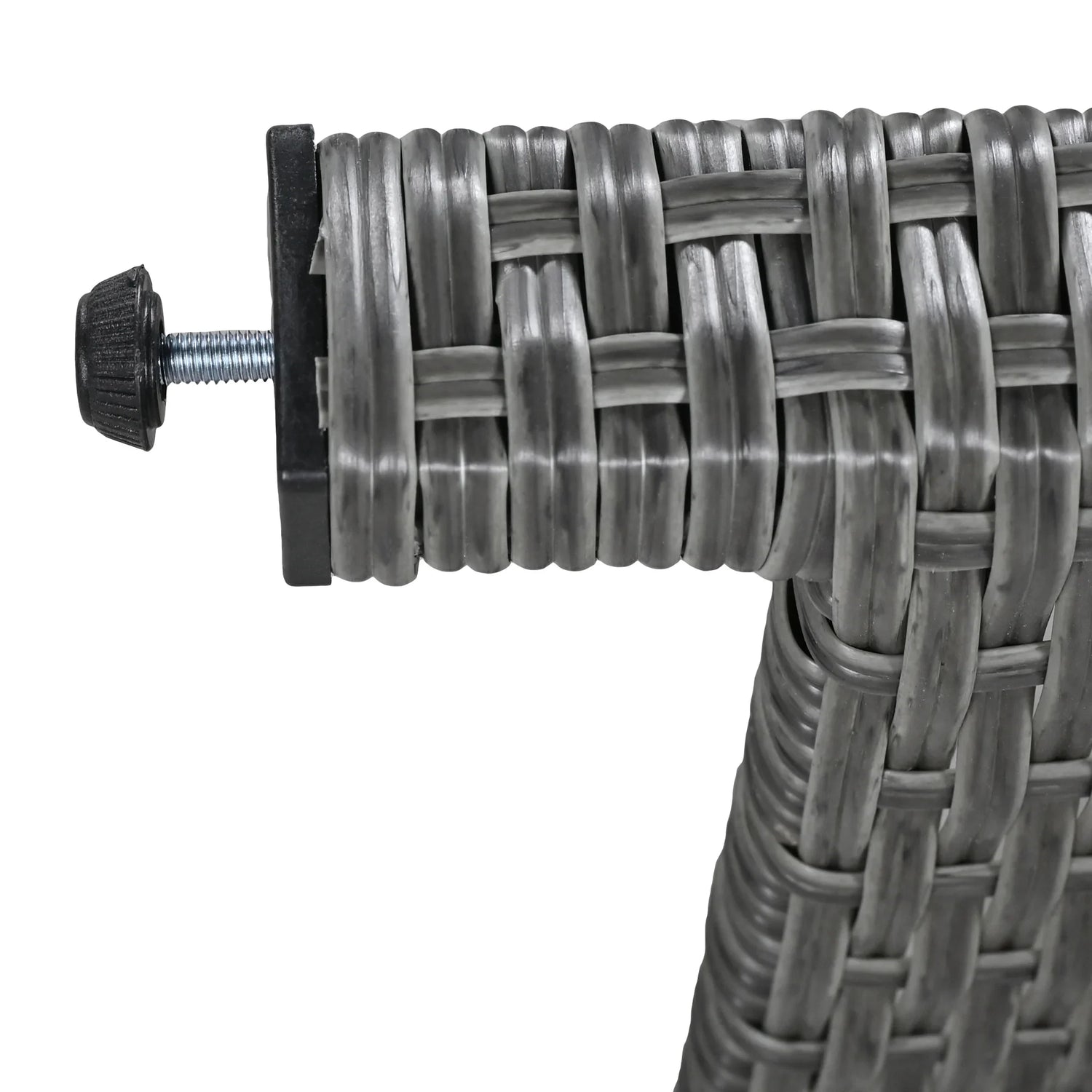 With 2 loveseats with side tables, 1 corner sofa, 1 long bench, and 1 dining table, this 5-piece rattan sofa set can comfortably seat 7 people, while the spacious table is perfect for placing food and drinks. Adjustable feet under the table will make it level and stable as much as possible.