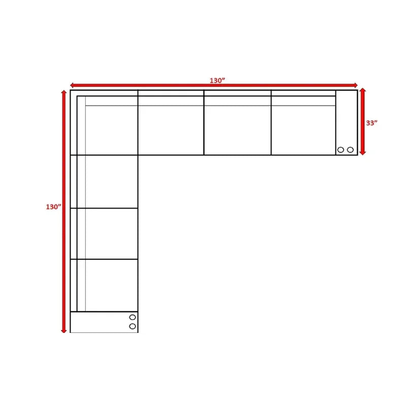 - Overall assembled dimensions: 130 in W × 33 in D × 26 in H (330.2 cm × 83.8 cm × 66.0 cm).