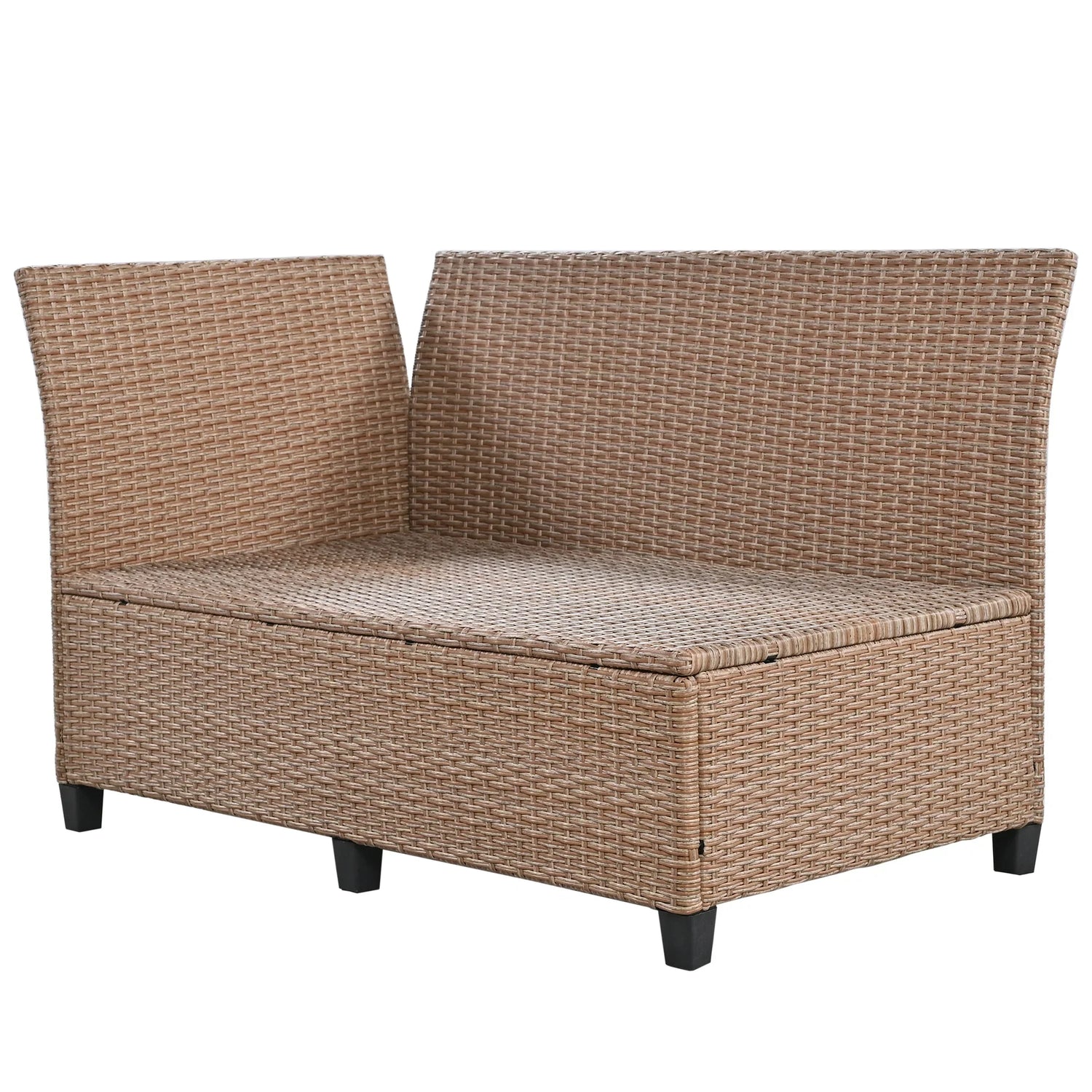 - [5-Piece Sectional Sofa Set] With 2 loveseats with side tables, 1 corner sofa, 1 long bench, and 1 dining table, this 5-piece rattan sofa set can comfortably seat 7 people. In contrast, the spacious table is perfect for placing food and drinks. Adjustable feet under the table will make it level and stable as much as possible. Transform your backyard into a leisure place easily and enjoy your sunny time!