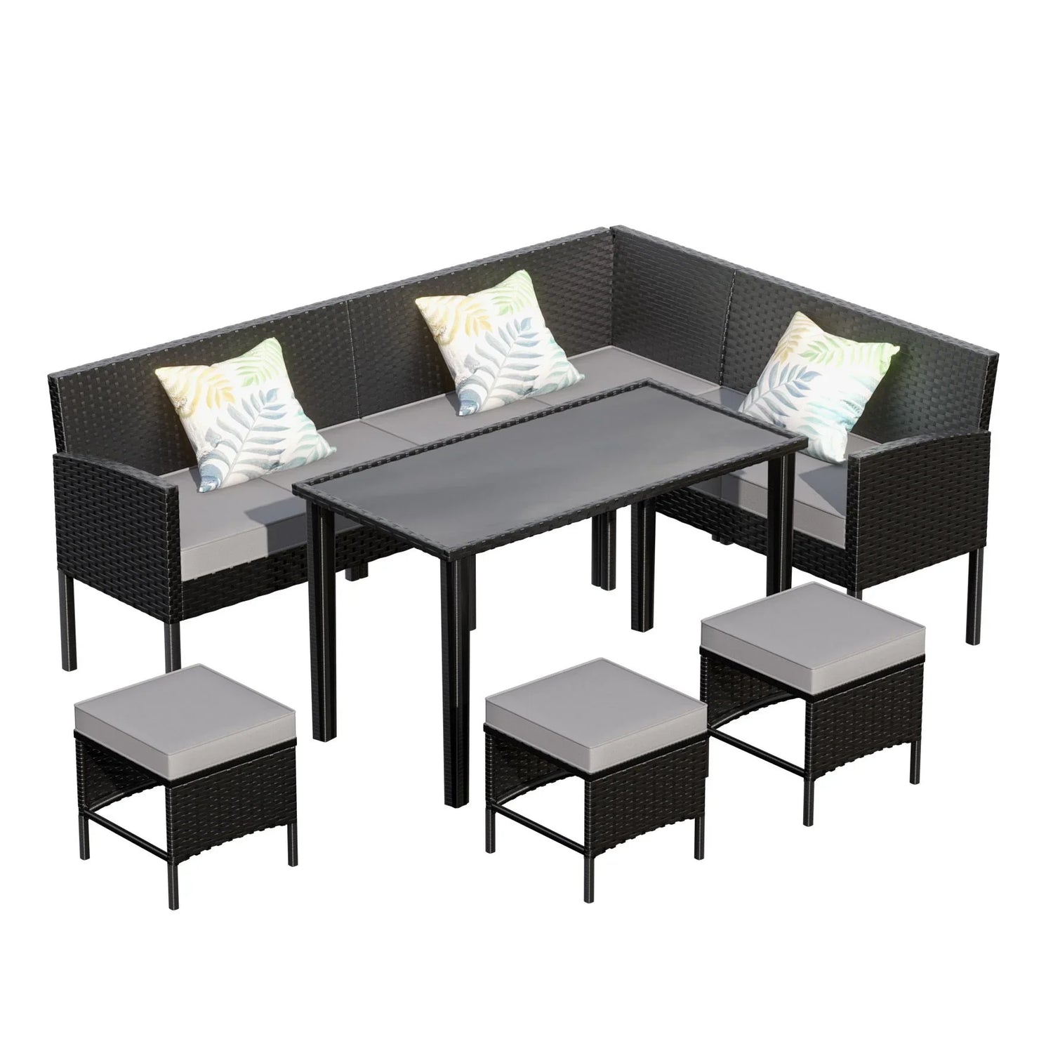 7 Piece Outdoor Furniture Set Waterproof Cushions Glass Table