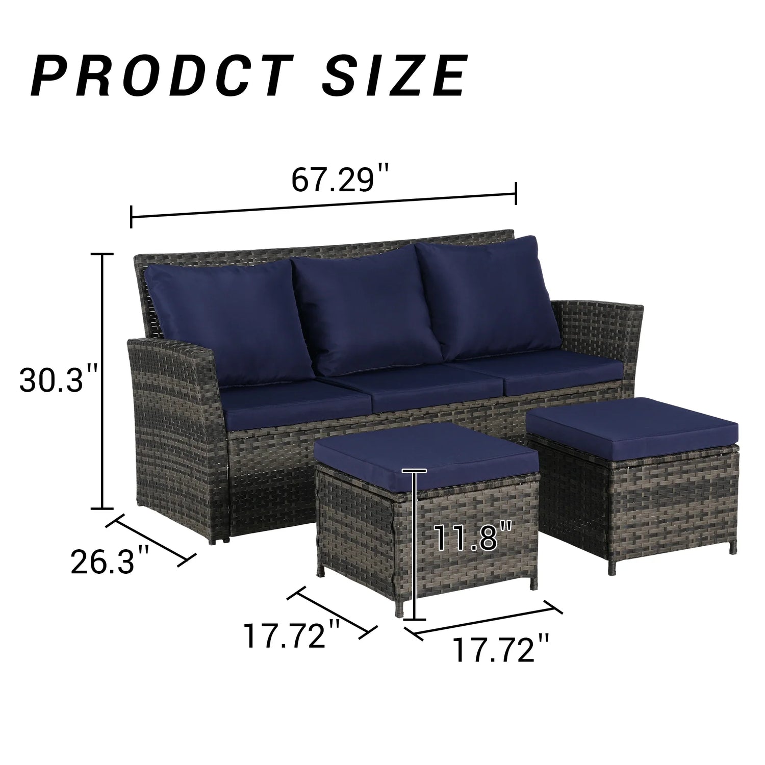 1* Three seat sofa size | 67.29*26.3*30.3 inch |