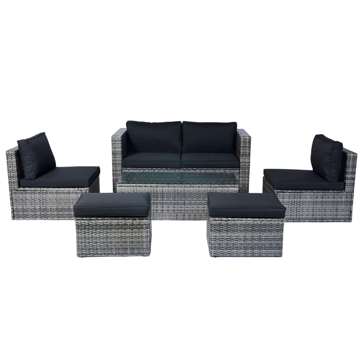 6 Piece Patio Wicker Sectional Set Patio Backyard Conversation Set Space Saving - Gray / Black is backordered and will ship as soon as it is back in stock.