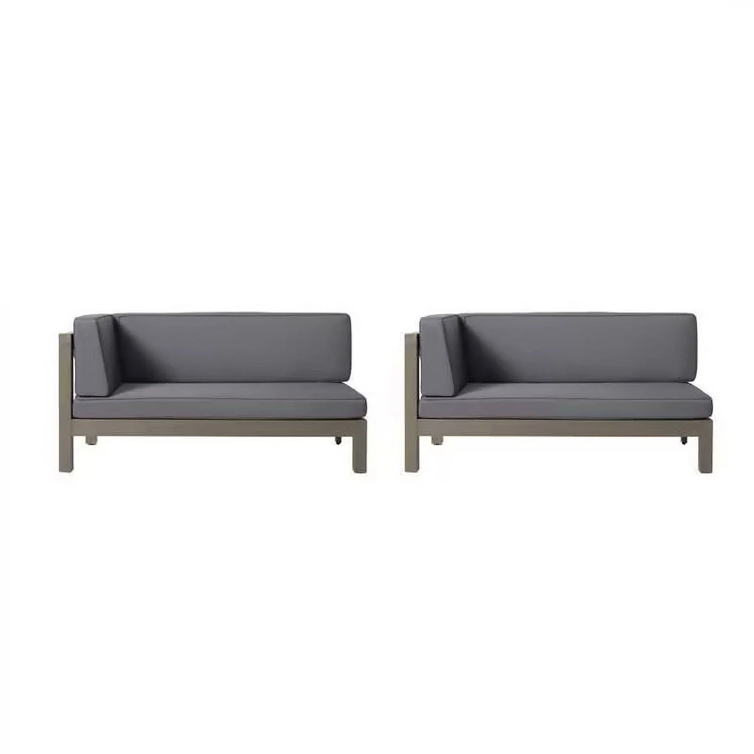 Aura - 2 Piece Outdoor Set With X Back Left Bench And Corner - Dark Gray is backordered and will ship as soon as it is back in stock.