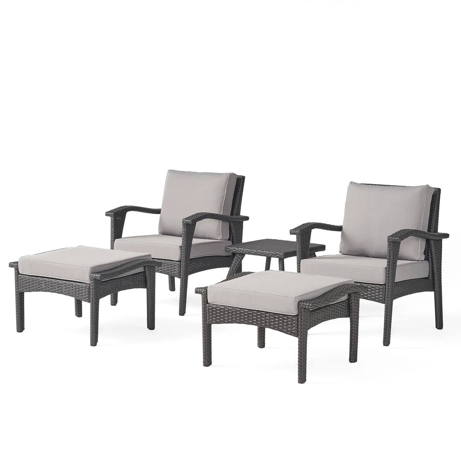 - Complete Set: Includes two chairs, two ottomans, and a small table for a complete outdoor lounging experience.