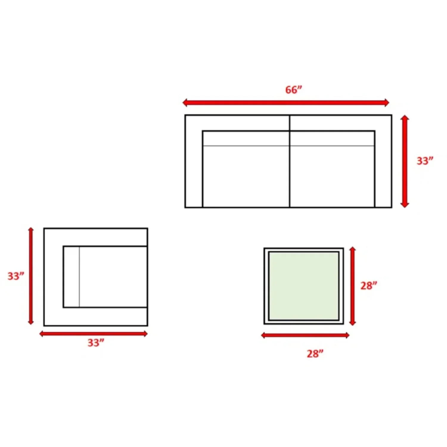 • Complete 4-Piece Set: Includes one loveseat, one lounge chair, one coffee table, and six cushions.