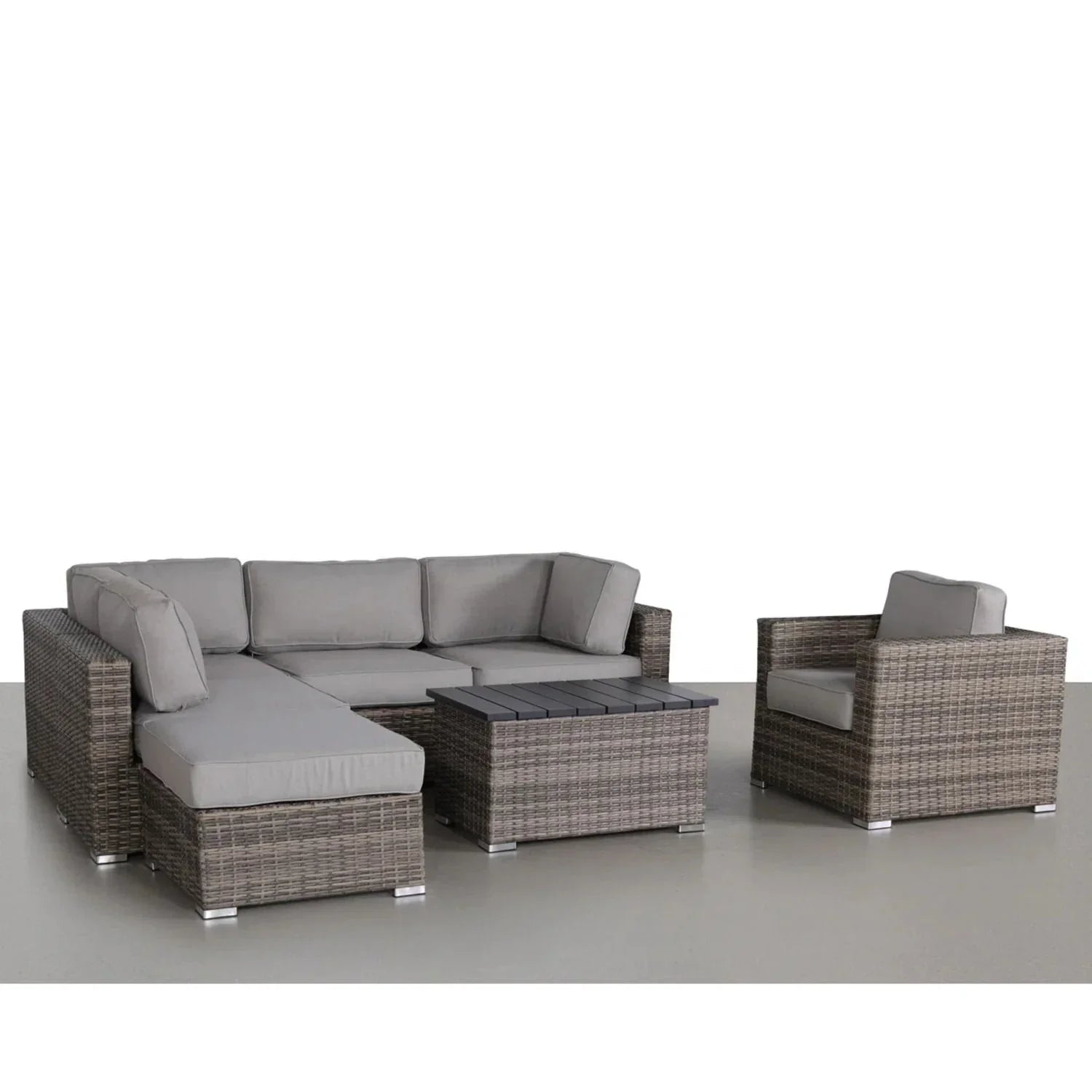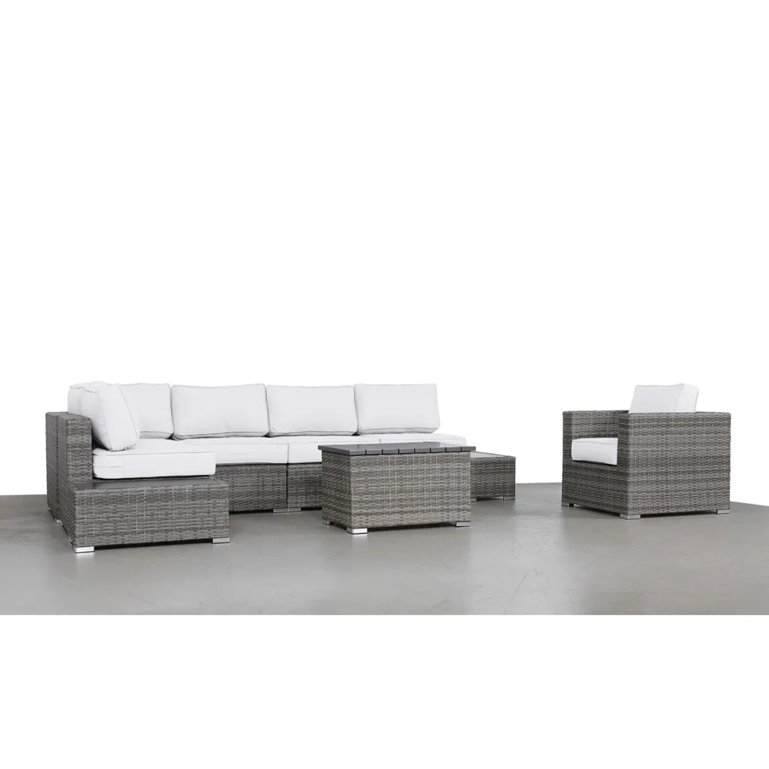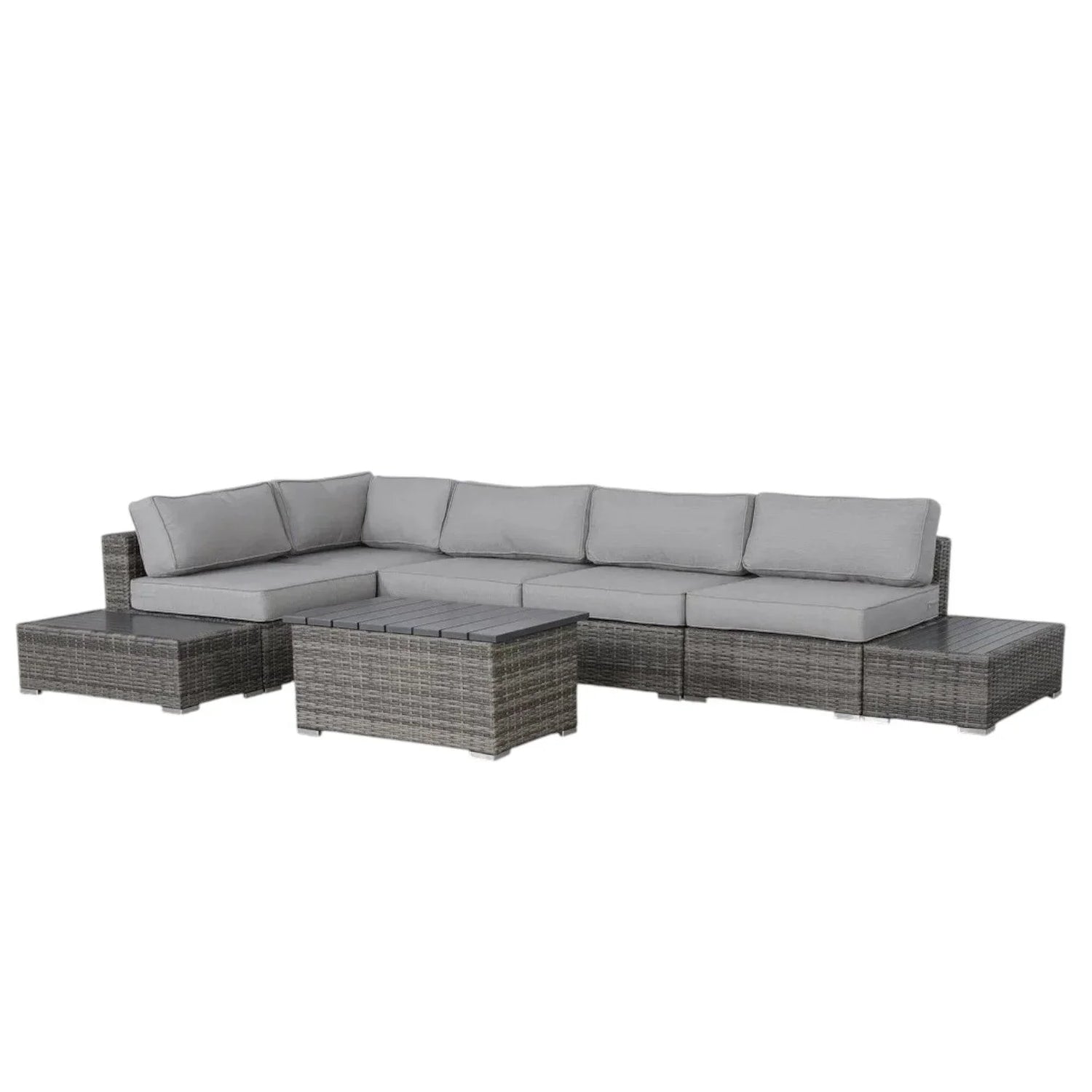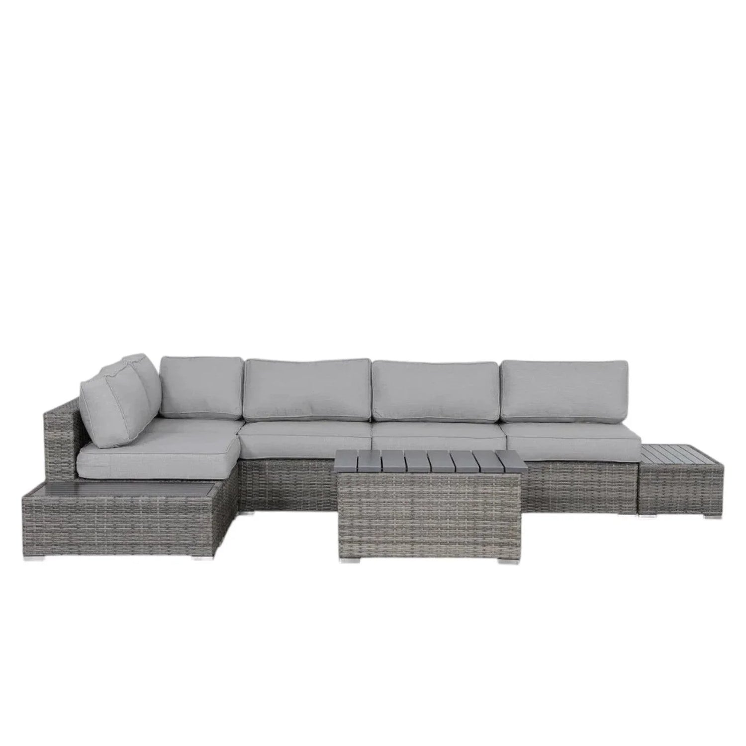 6 Seater Patio Wicker Sofa Set With Coffee Table - Gray Mix