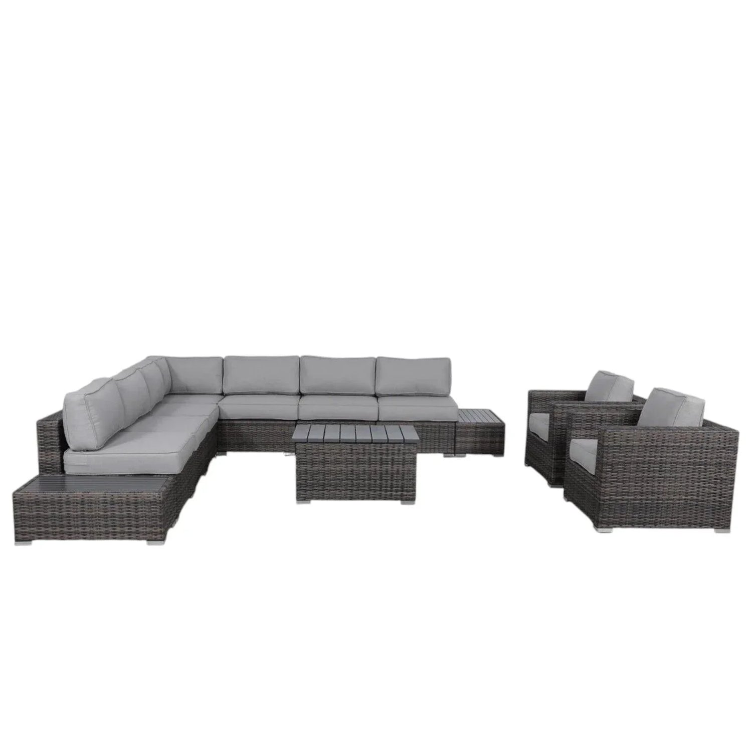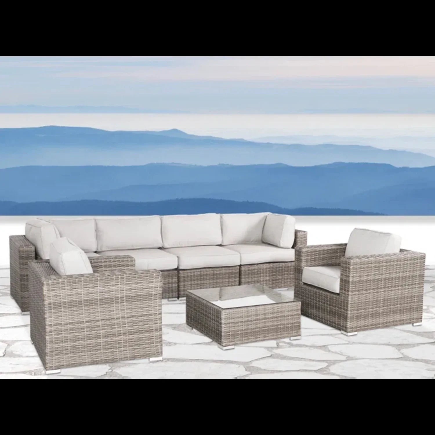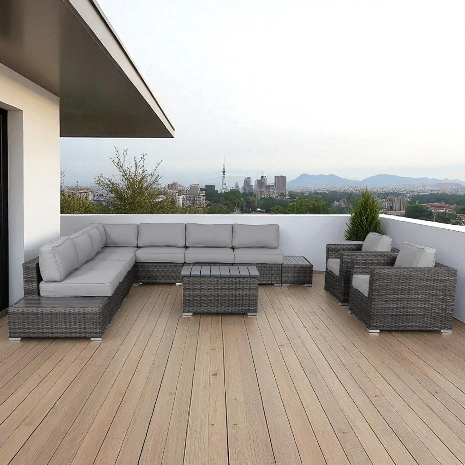 Luxury 8 Person Wicker Patio Lounge Set With Premium Cushions Weather Resistant - Gray Mix / Taupe