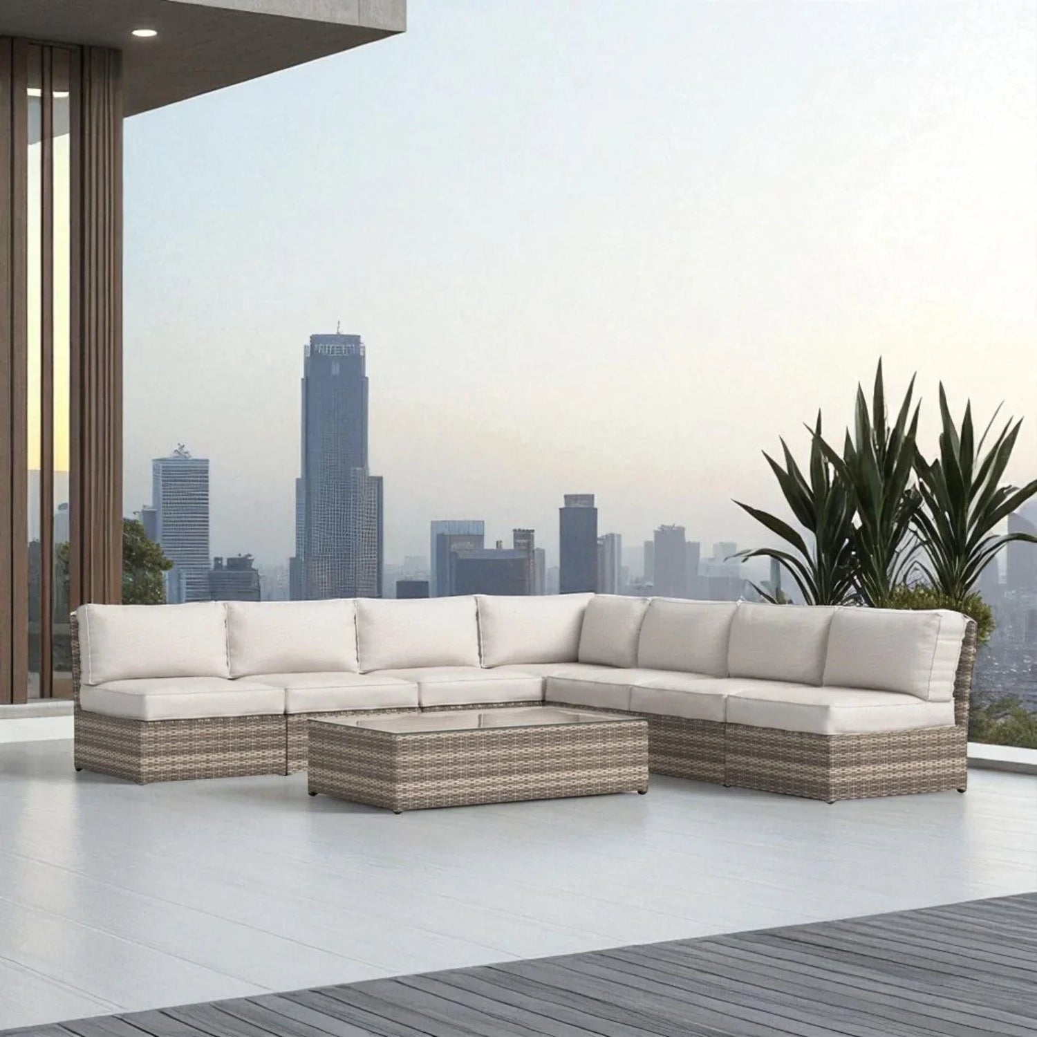 Comfortable Modern Patio Rattan Sectional Set With Cushions