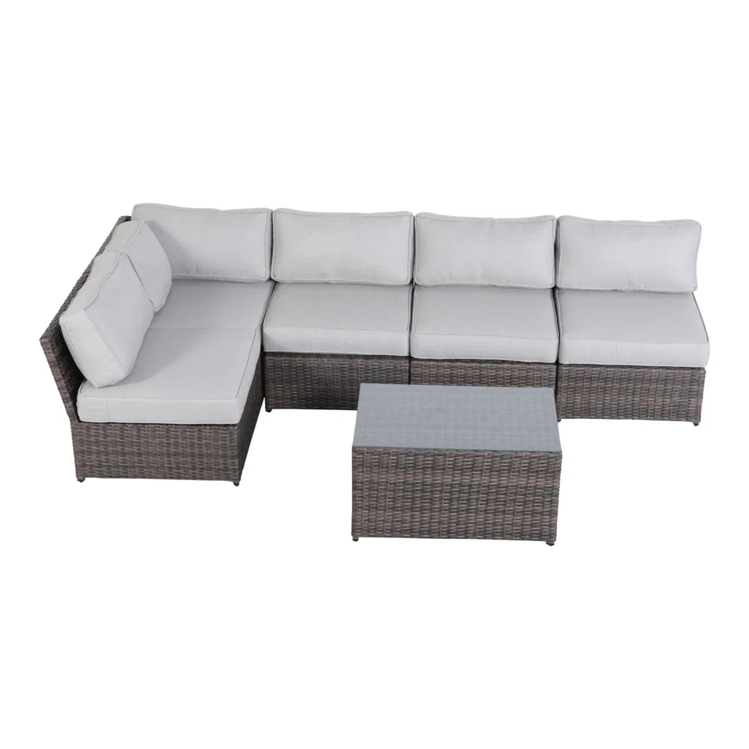 6 Seat Patio Wicker Sectional With Cushions - Gray Mix