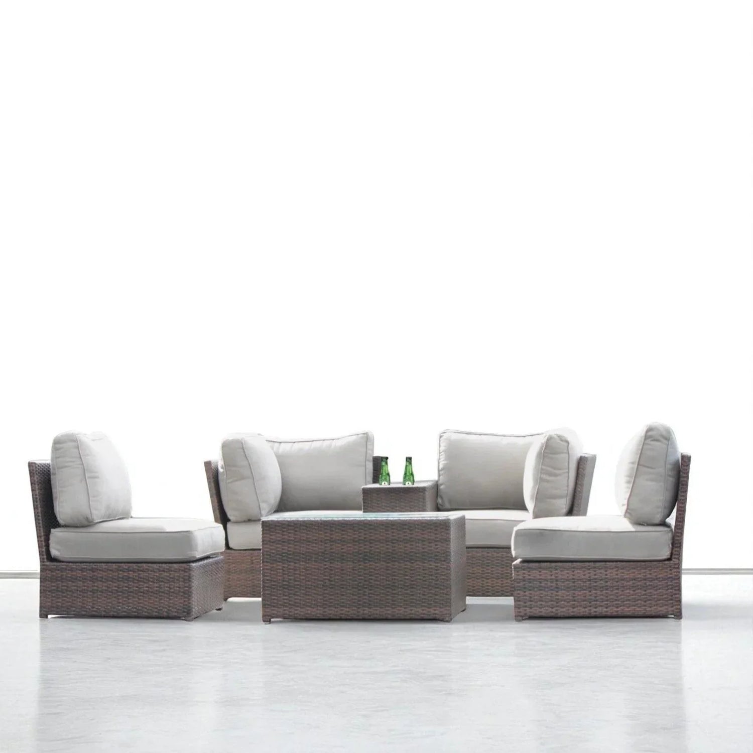 Rattan Sofa Seating Group With Cushions - Brown
