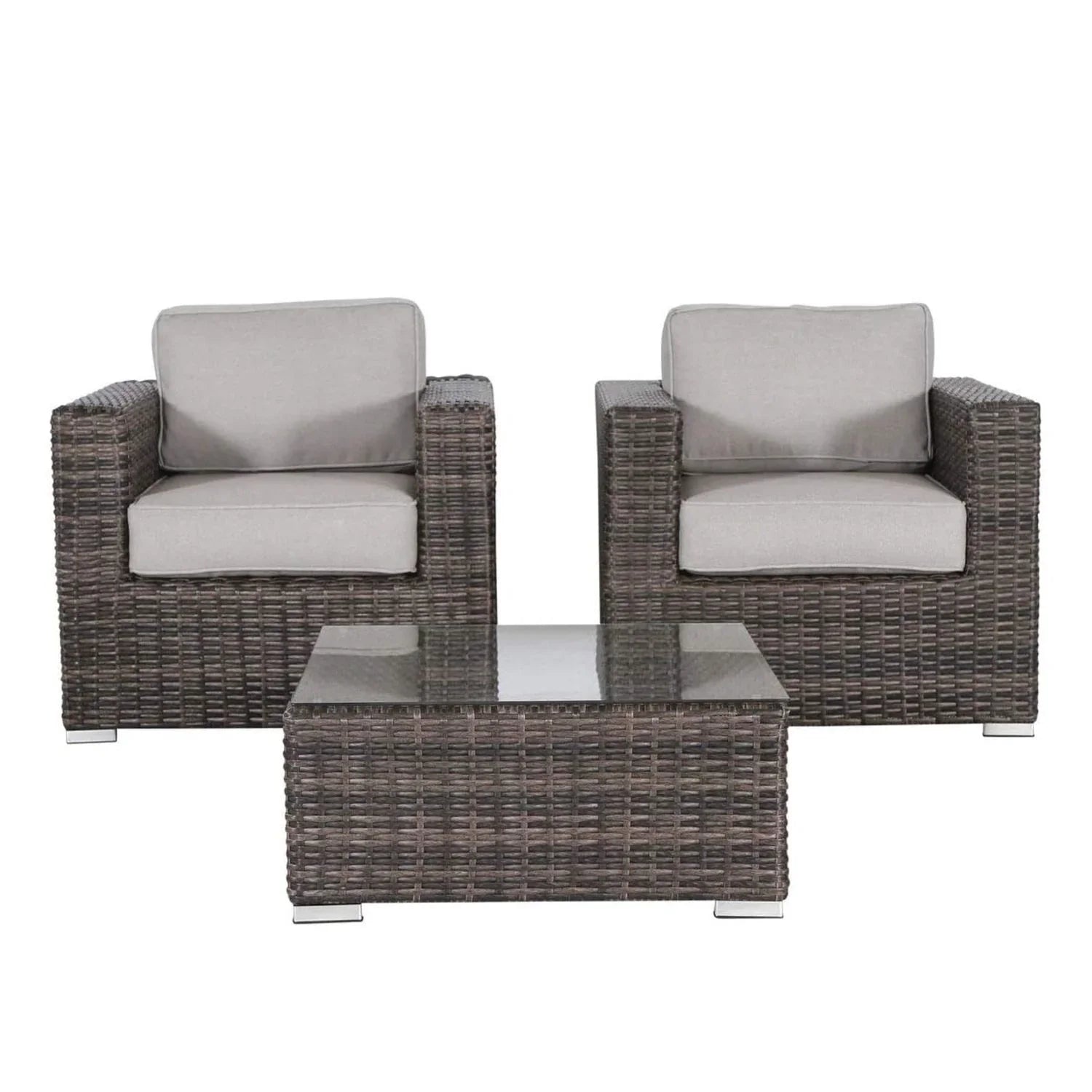 3 Piece Patio Sofa Set, Resort Grade Outdoor Seating With Cushioned Comfort - Brown