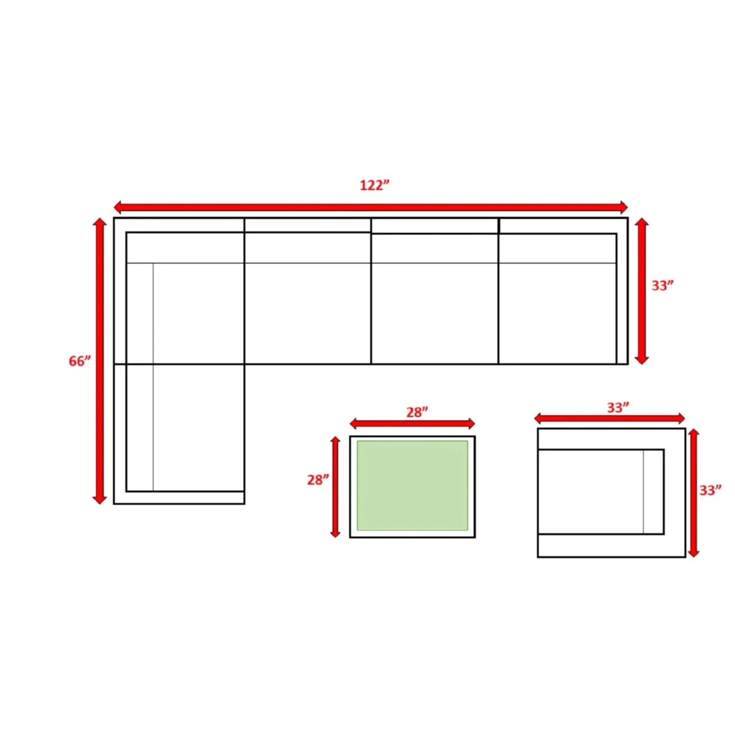 5 Person Outdoor Sectional Sofa Set With Frame And Glass Table - Espresso